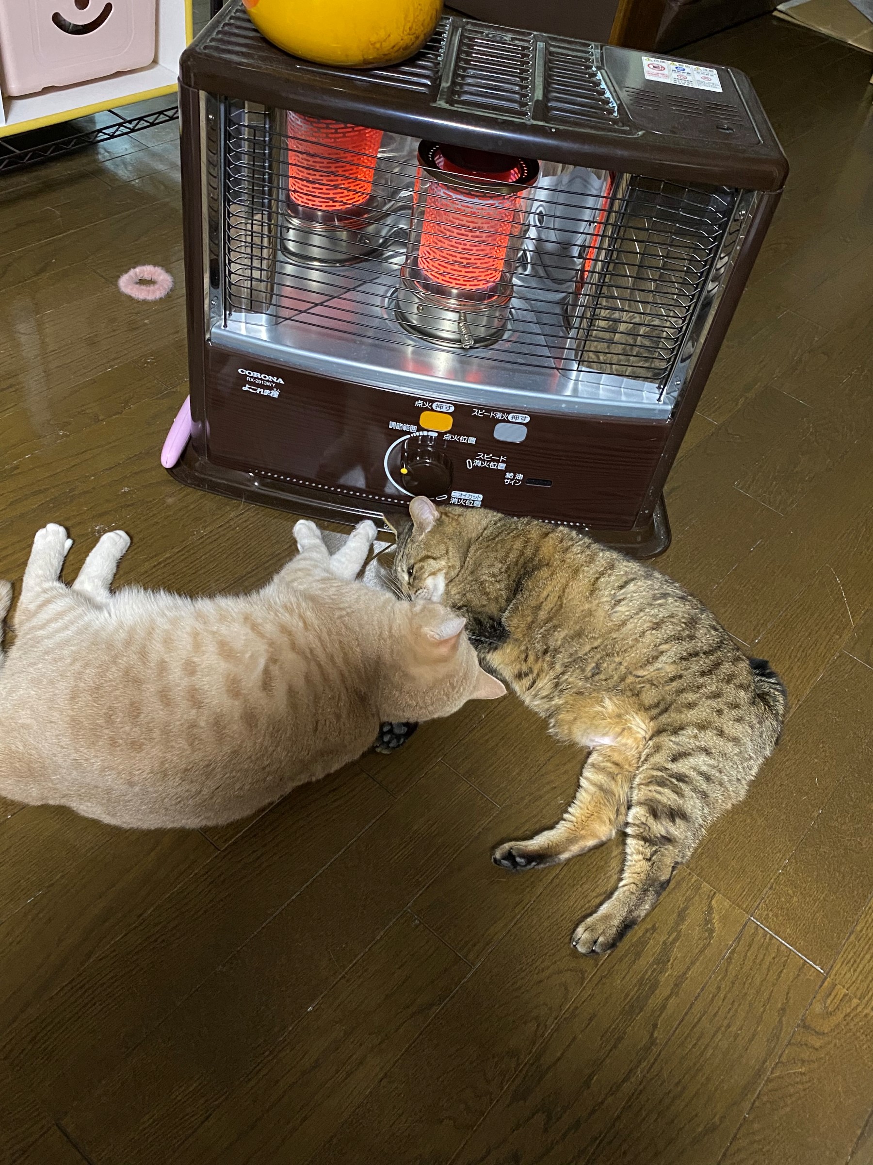 冬季恒例、ストーブの前に猫集合=^_^=