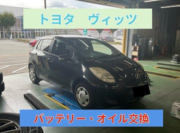 トヨタ ヴィッツ バッテリー、オイル交換作業!