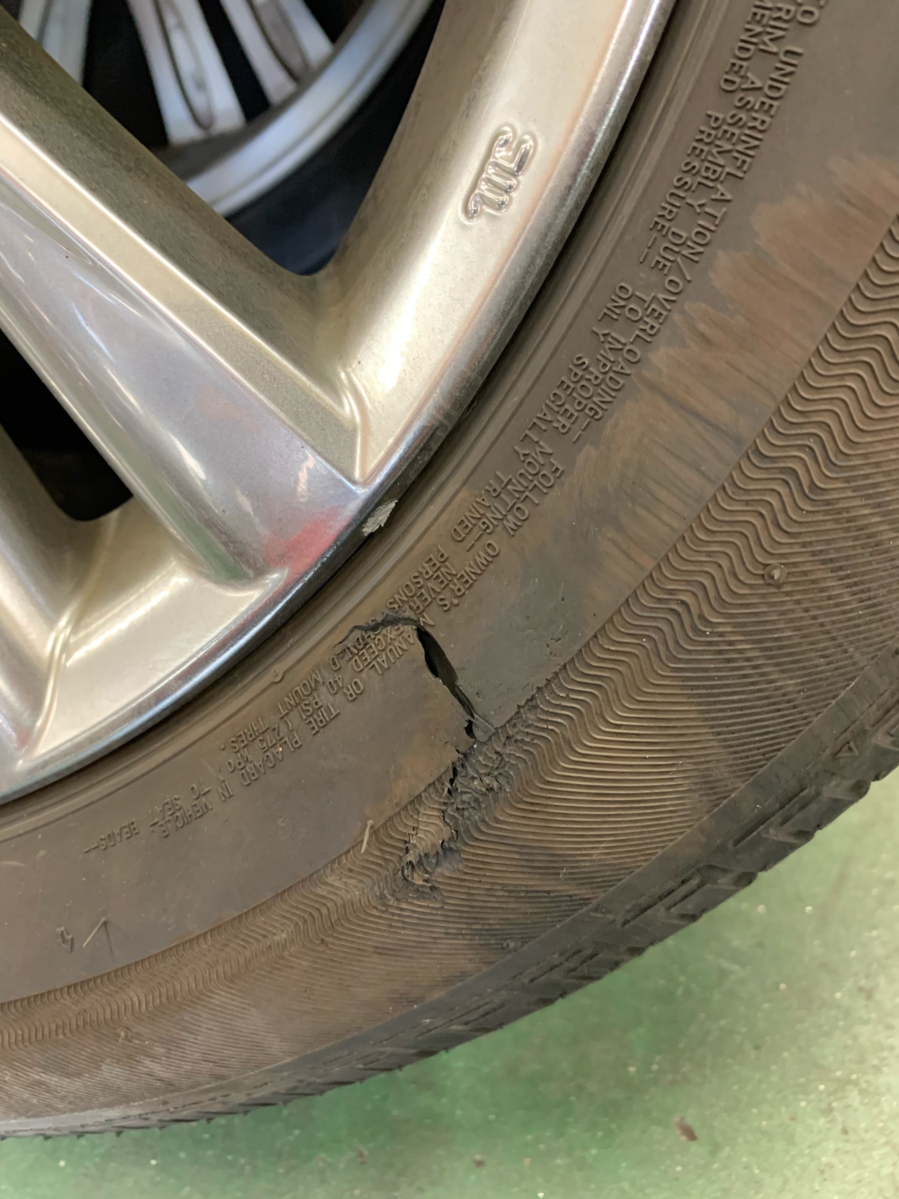 先日、サイドに傷が出来たタイヤをお預かりしました↓