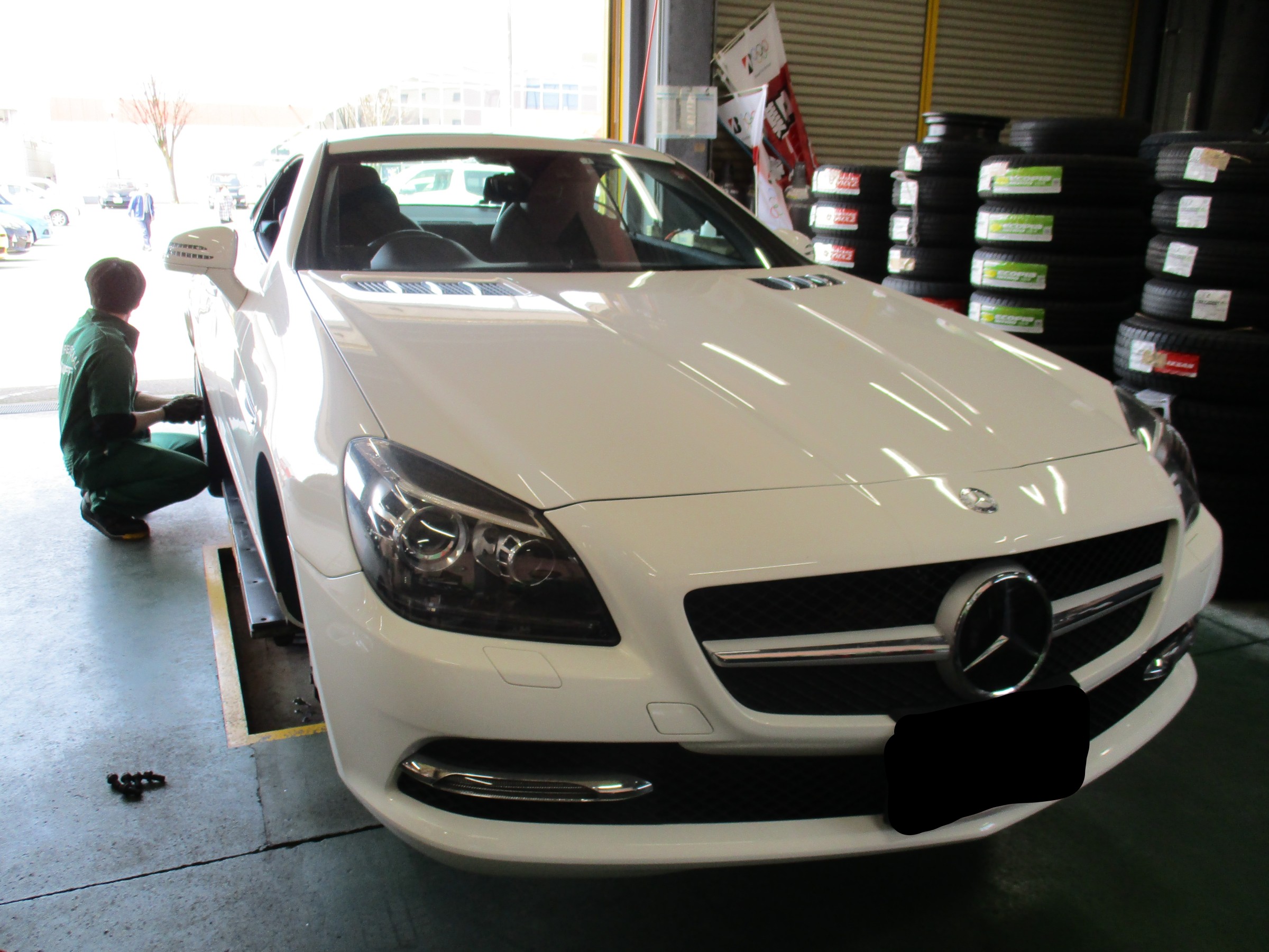 今回はベンツSLKのタイヤ交換と共に