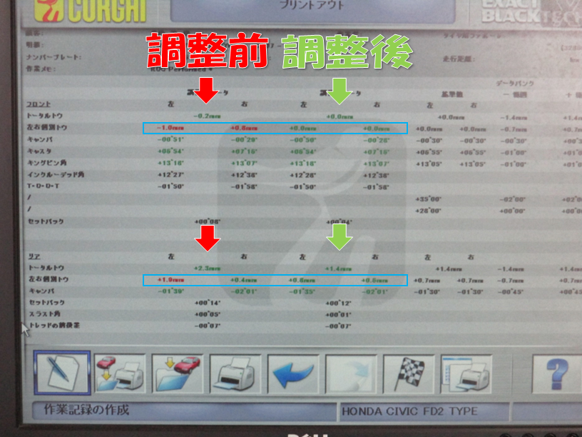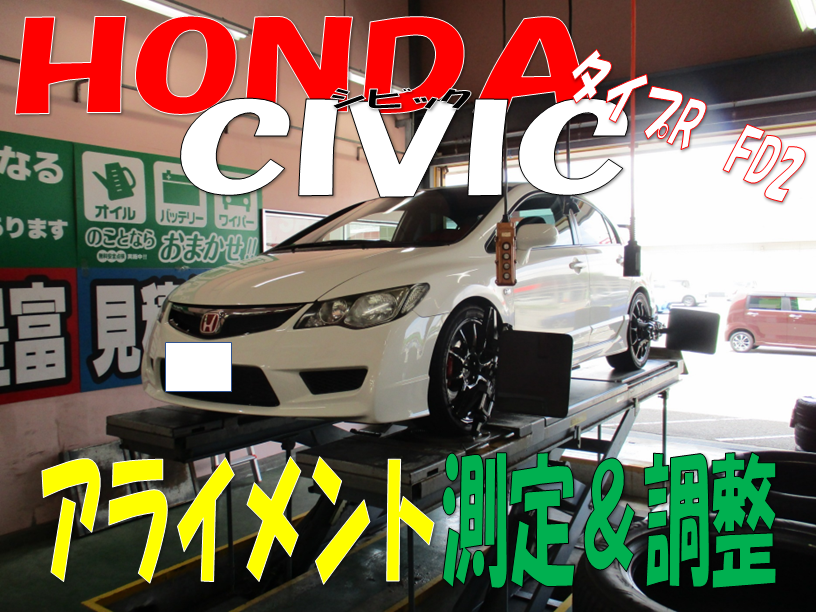 こんにちは!本日はHONDA CIVIC TYPER FD2のアライメントを承りました。