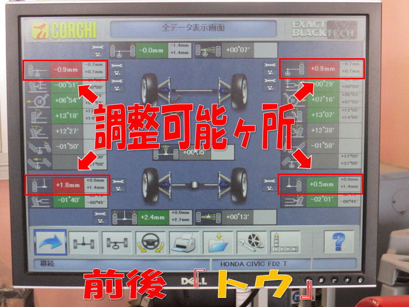 このお車の調整可能ヶ所は前後の『トウ』です。