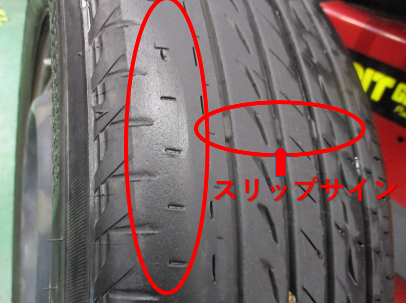 スリップサインとはタイヤの溝の中にある盛り上がった箇所で