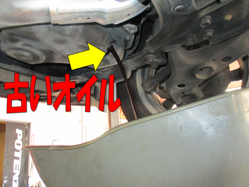 今回はお車を持ち上げて下から古いオイルを排出しました!