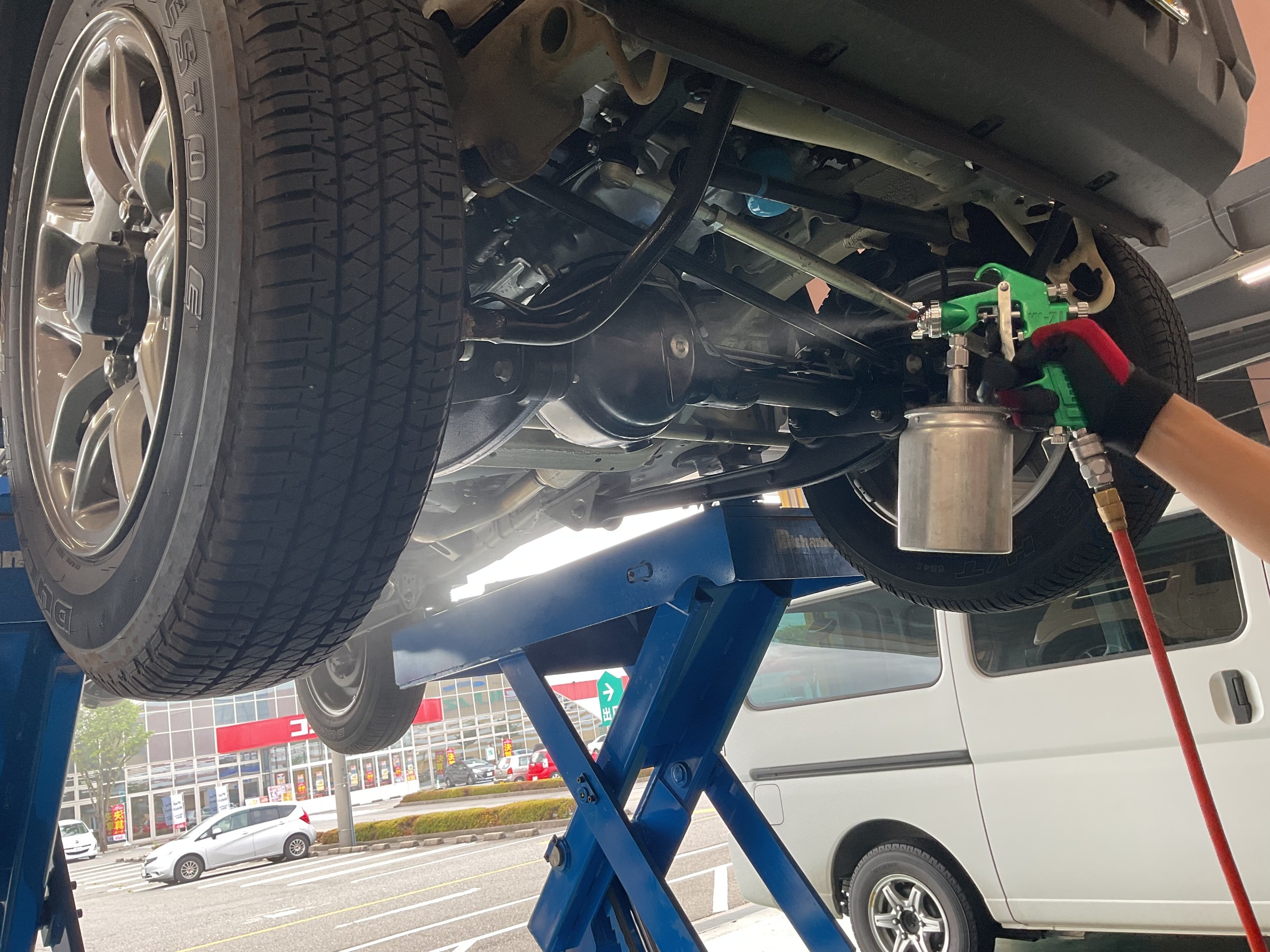 リフトアップして下から満遍なく専用の防錆剤を塗布していきます!