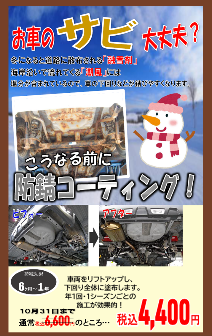 大事なお車の下回りが錆びる前に防錆コーティングで予防する事が大事ヾ(≧▽≦)ノ
