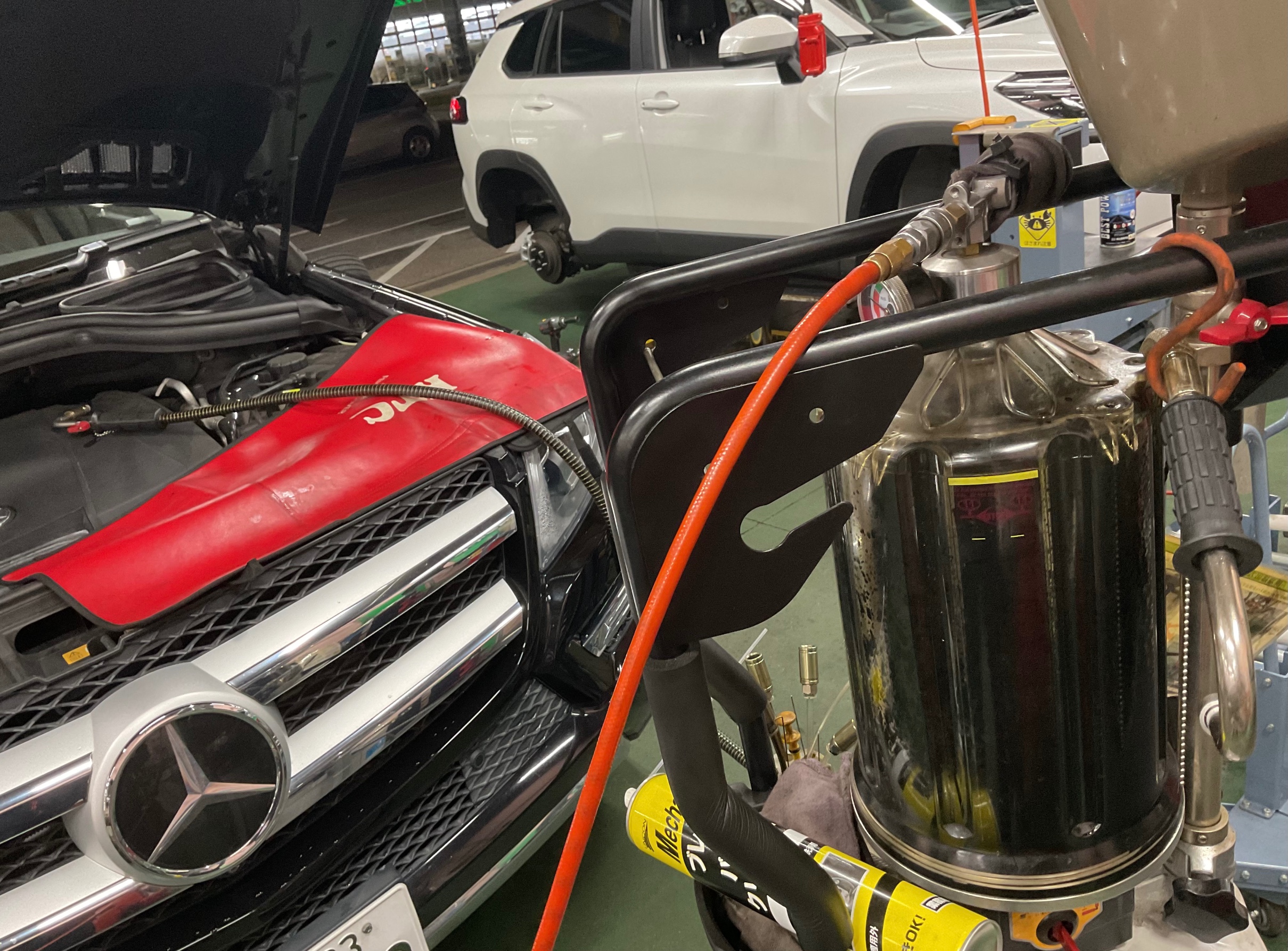 本日は メルセデス・ベンツ GL350 のオイル交換作業をご紹介!