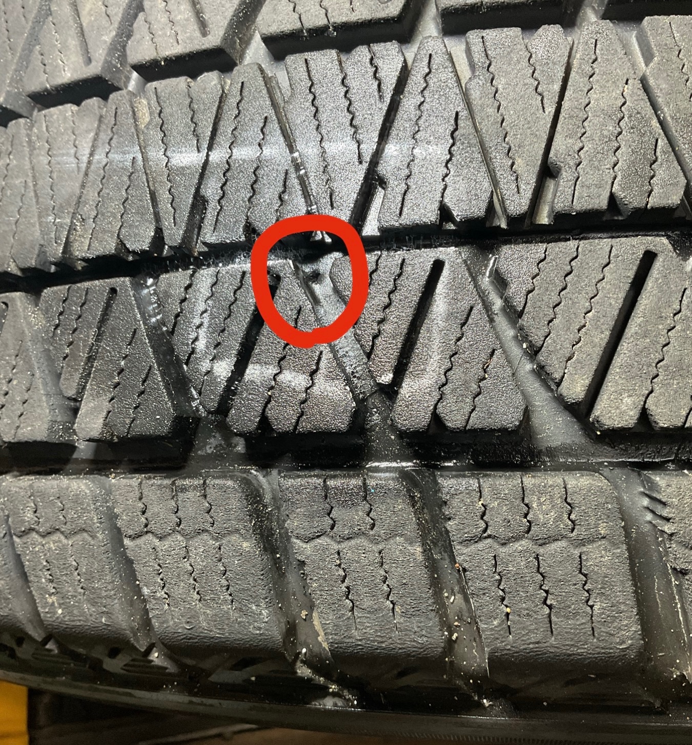 タイヤの強度が低下している証拠で危険なため修理は出来ません