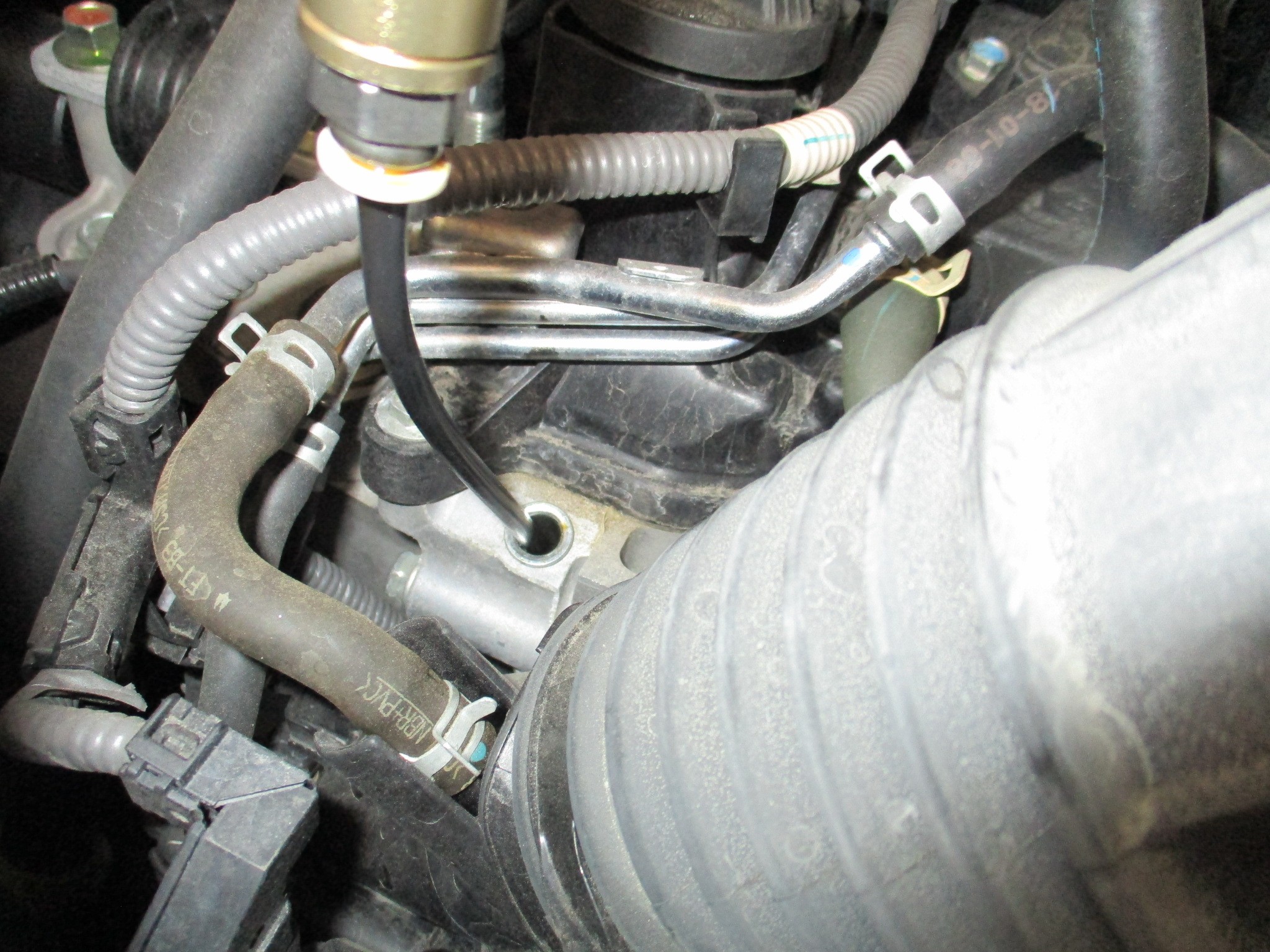 今回は、レベルゲージの穴から管を通して吸い上げます!