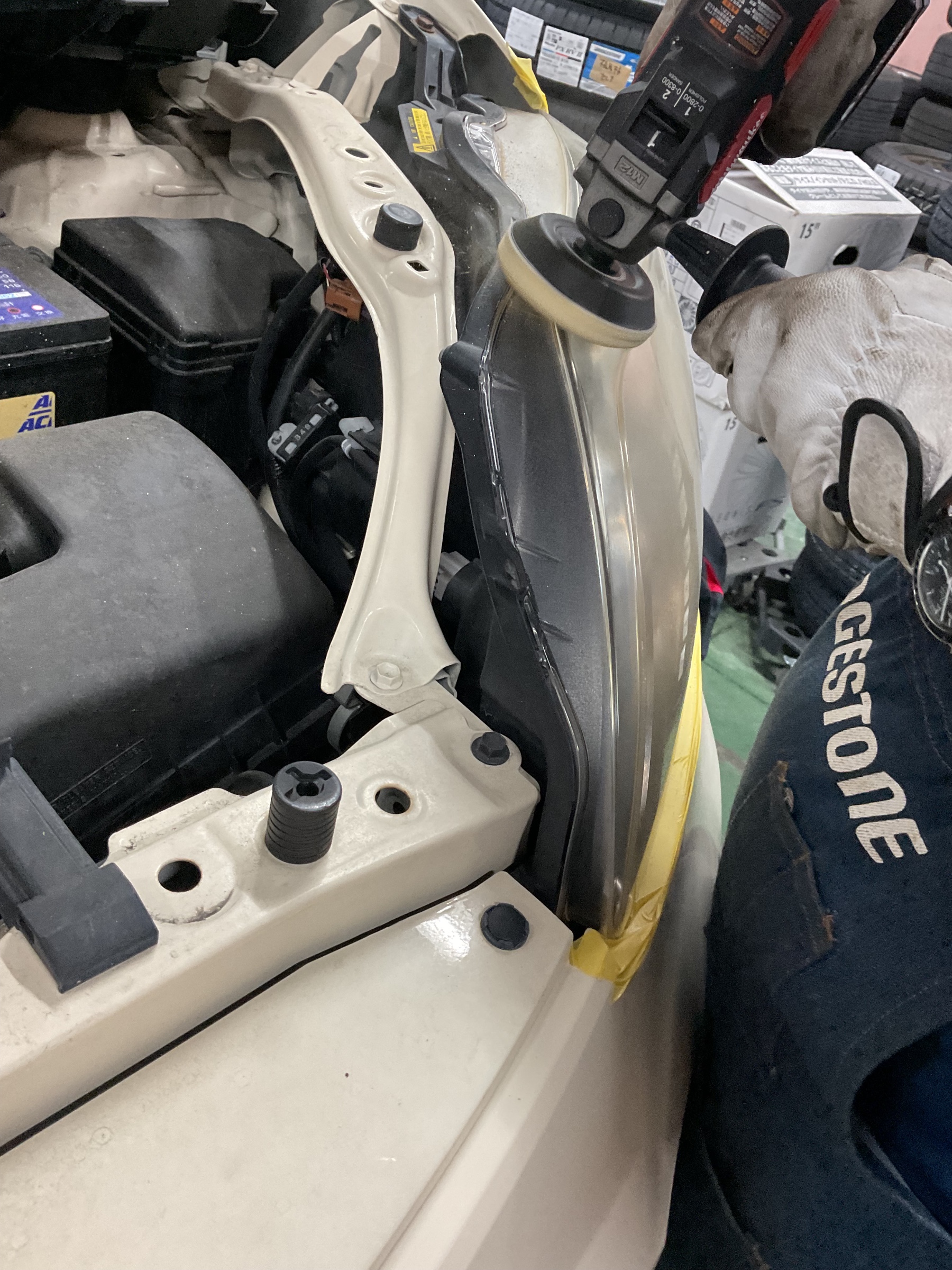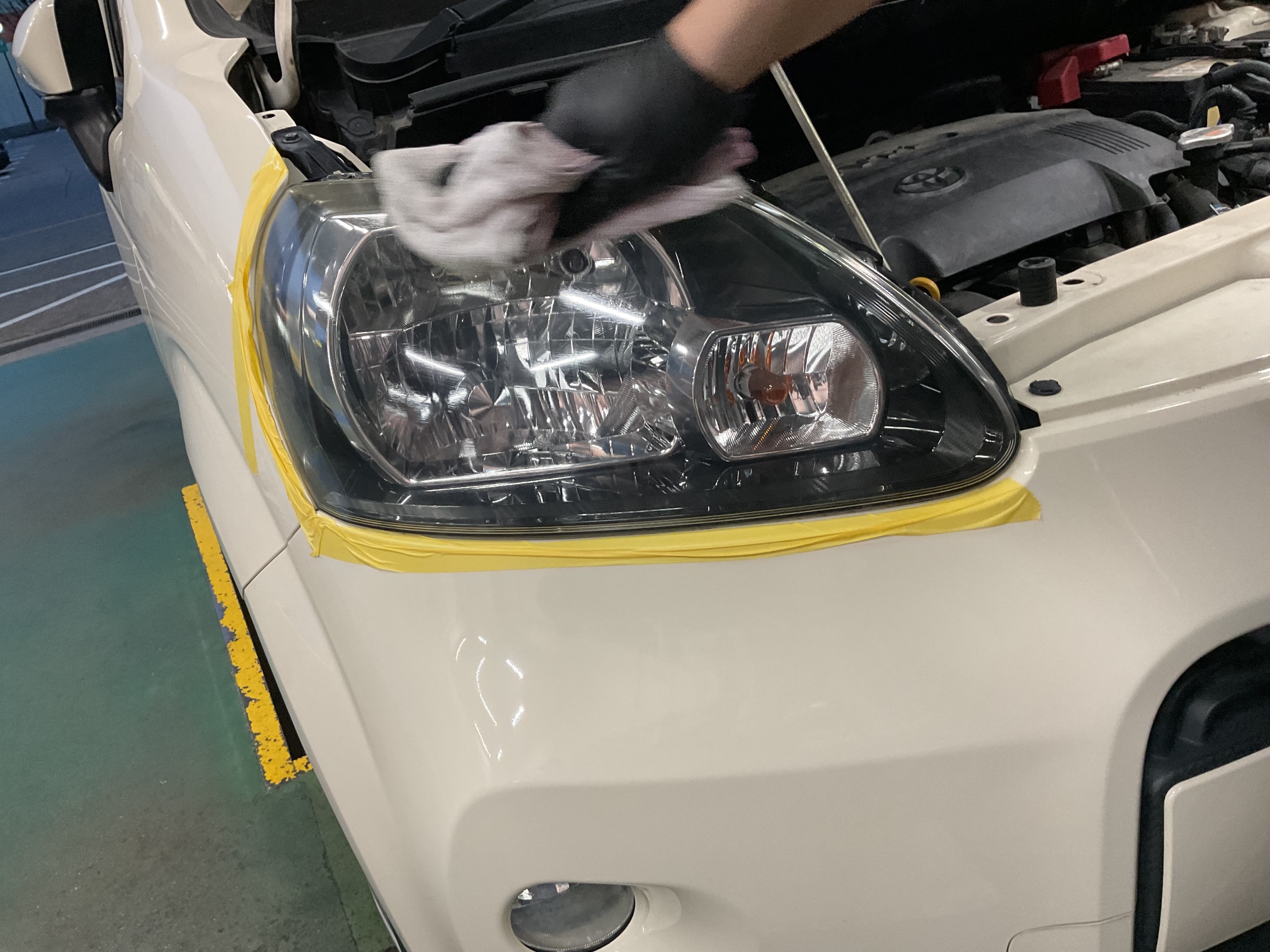 ライトのまわりをマスキングテープで保護してから作業開始!!