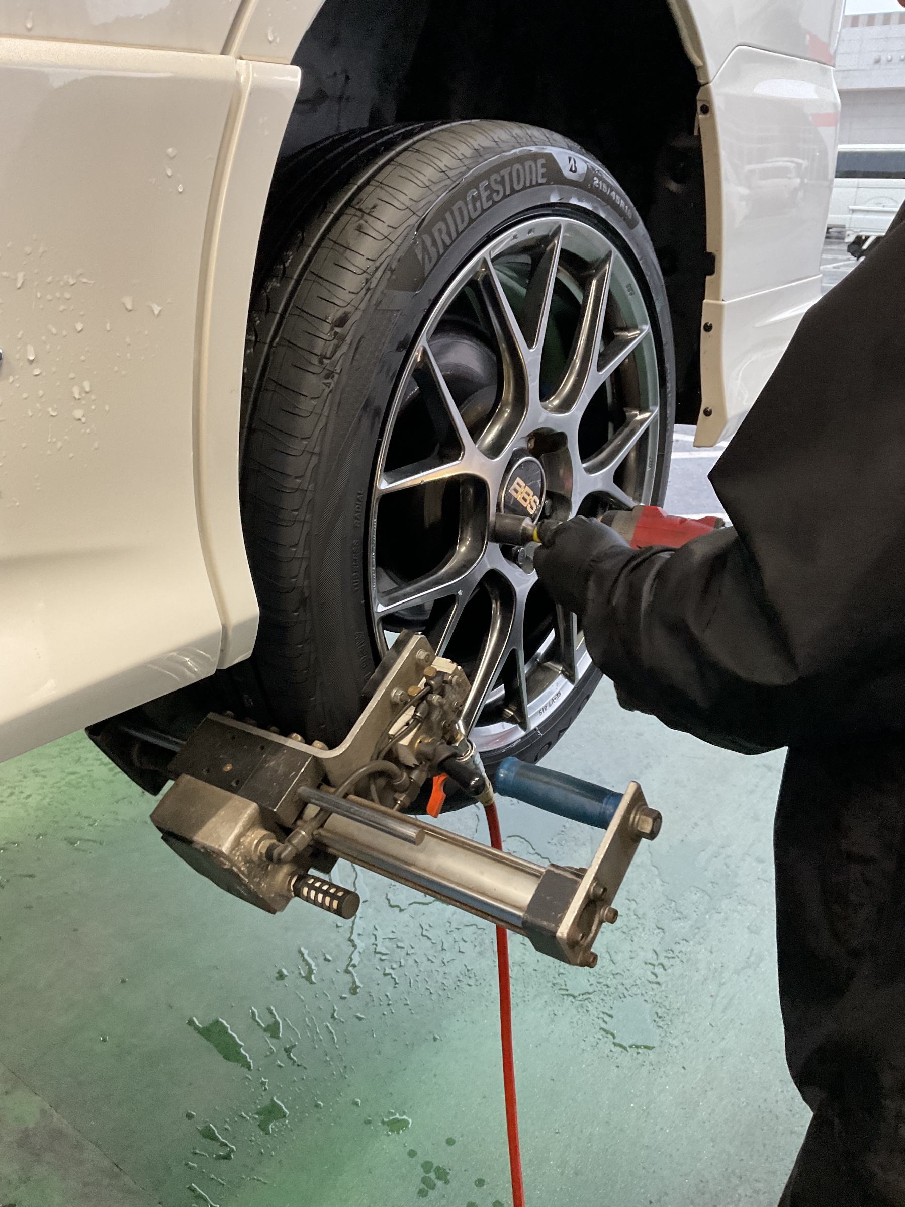 均一かつ正確にタイヤの中心を車軸に装着します。
