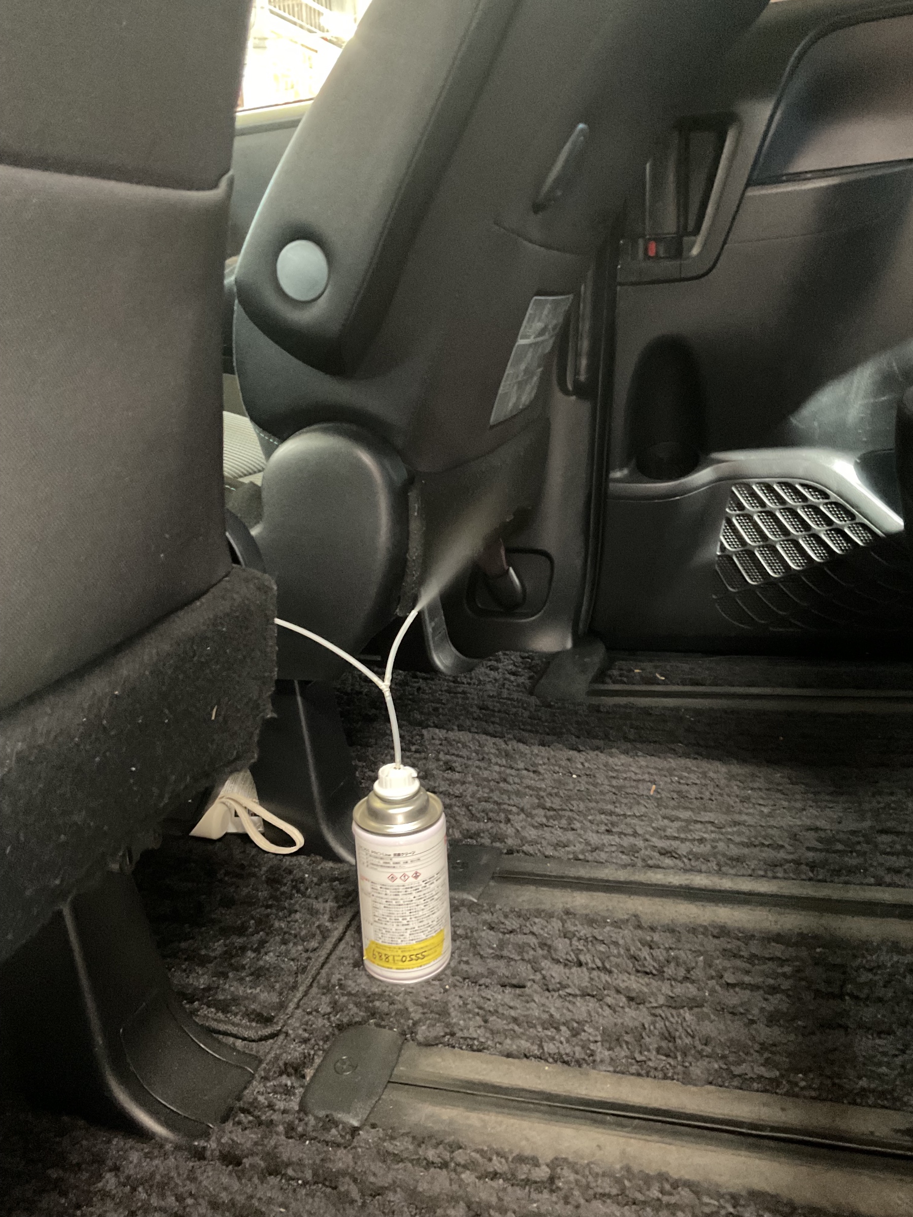 エアコン内部と車内にセットしてスプレーを噴射します!