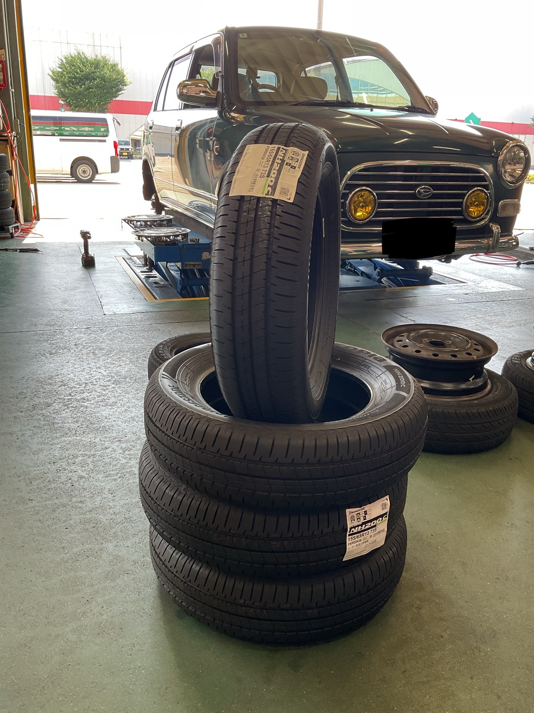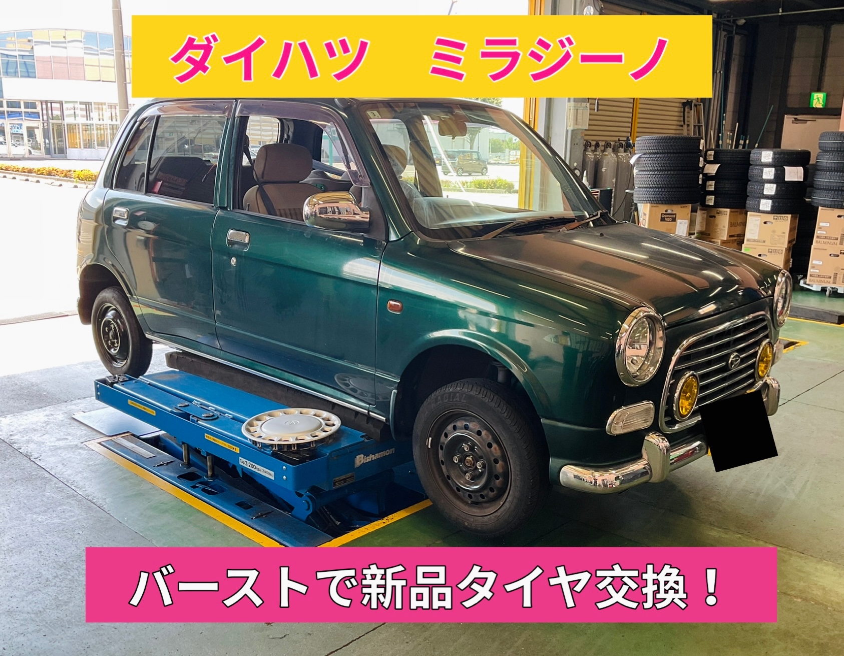 本日は ダイハツ ミラジーノ の新品タイヤ交換作業をご紹介!