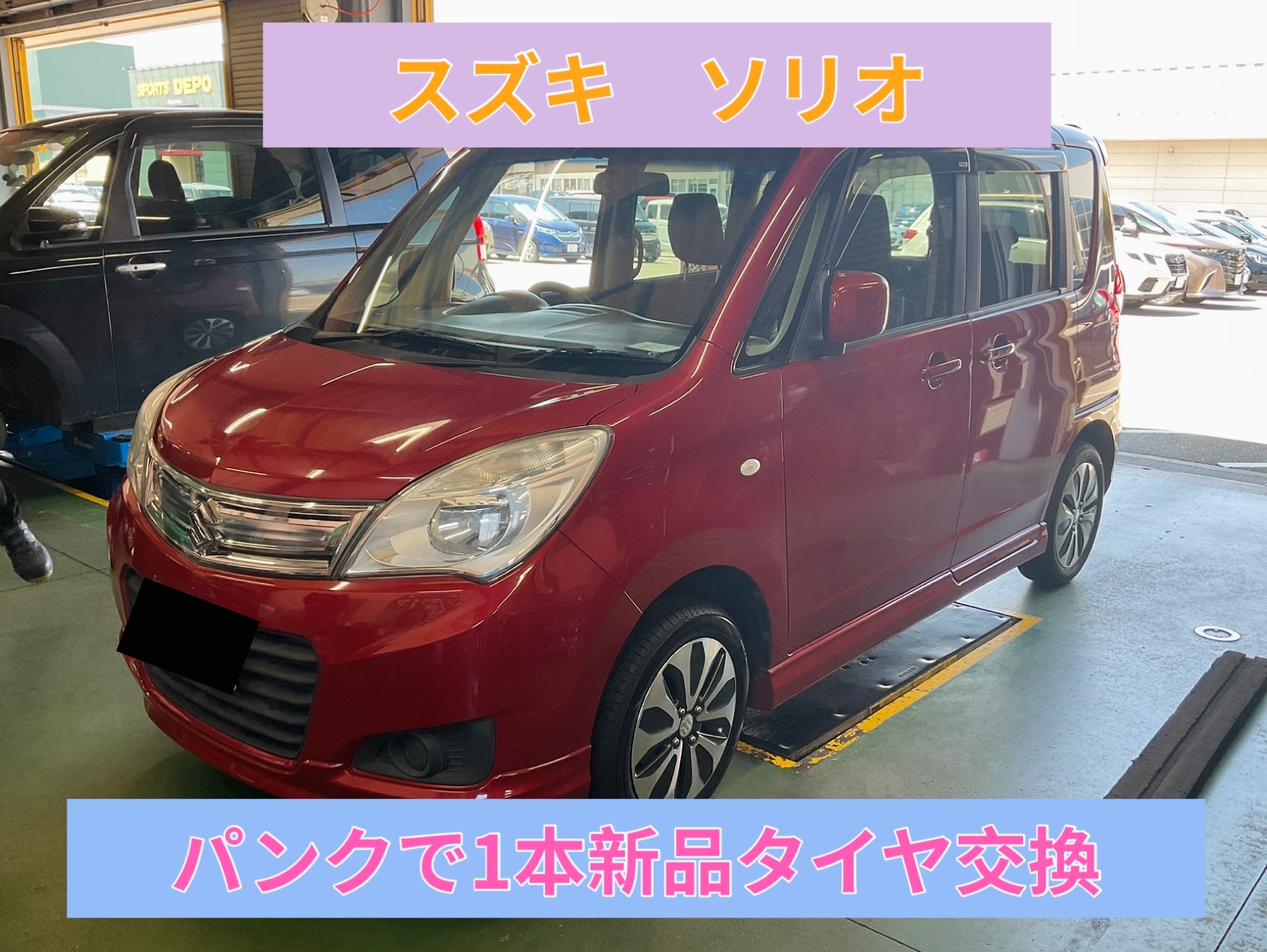 スズキ ソリオ パンクで1本新品タイヤ交換!