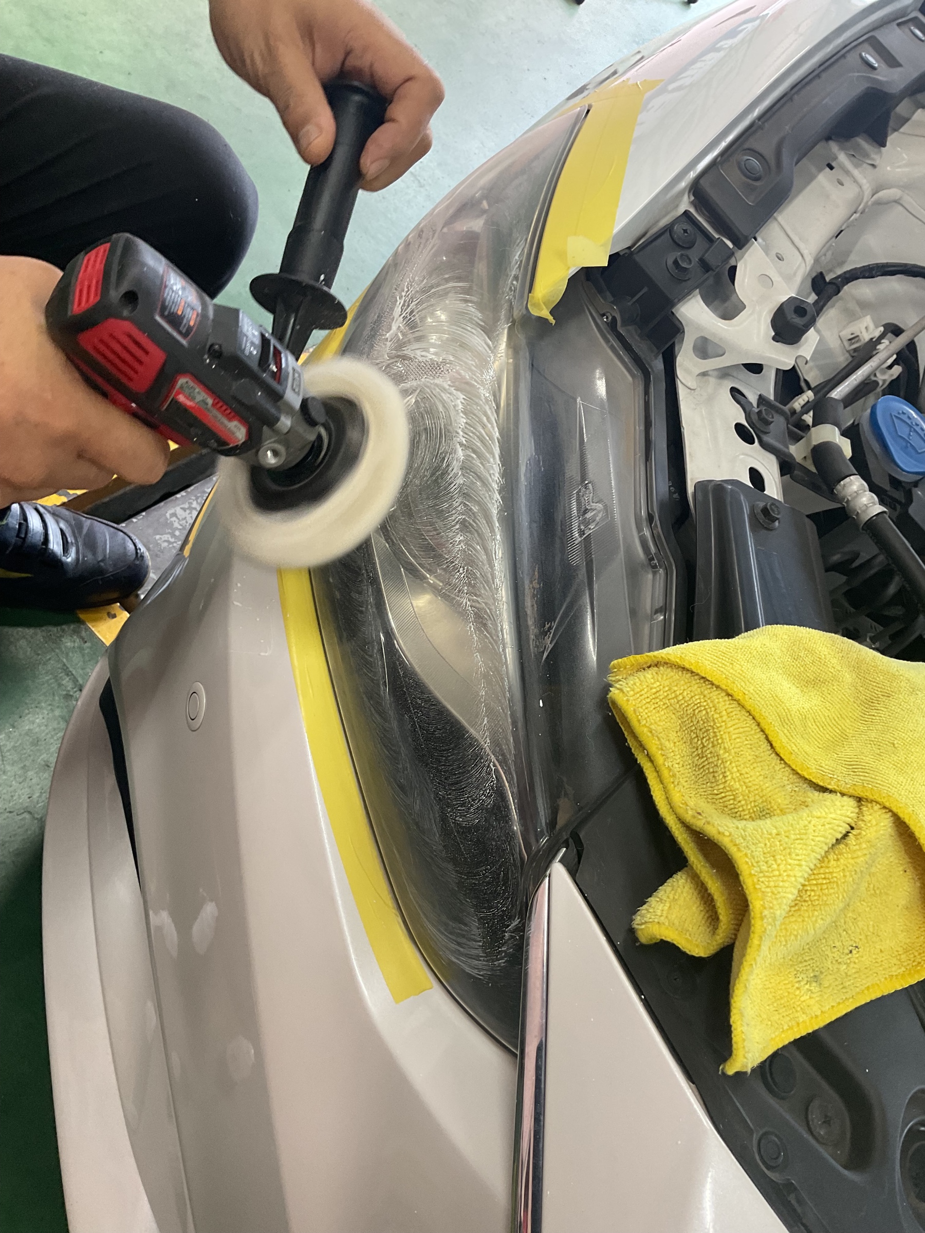 ライトのまわりをマスキングテープで保護してから作業開始!!