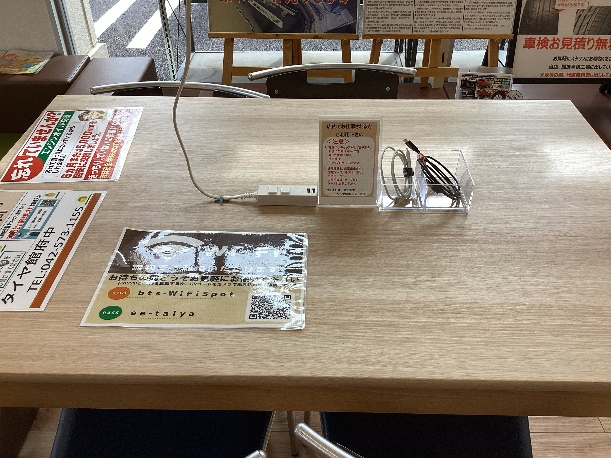 待合コーナーに電源・携帯充電器設置