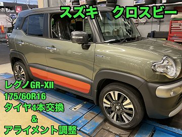 スズキ クロスビー レグノGR-XⅡ タイヤ4本交換&アライメント調整!