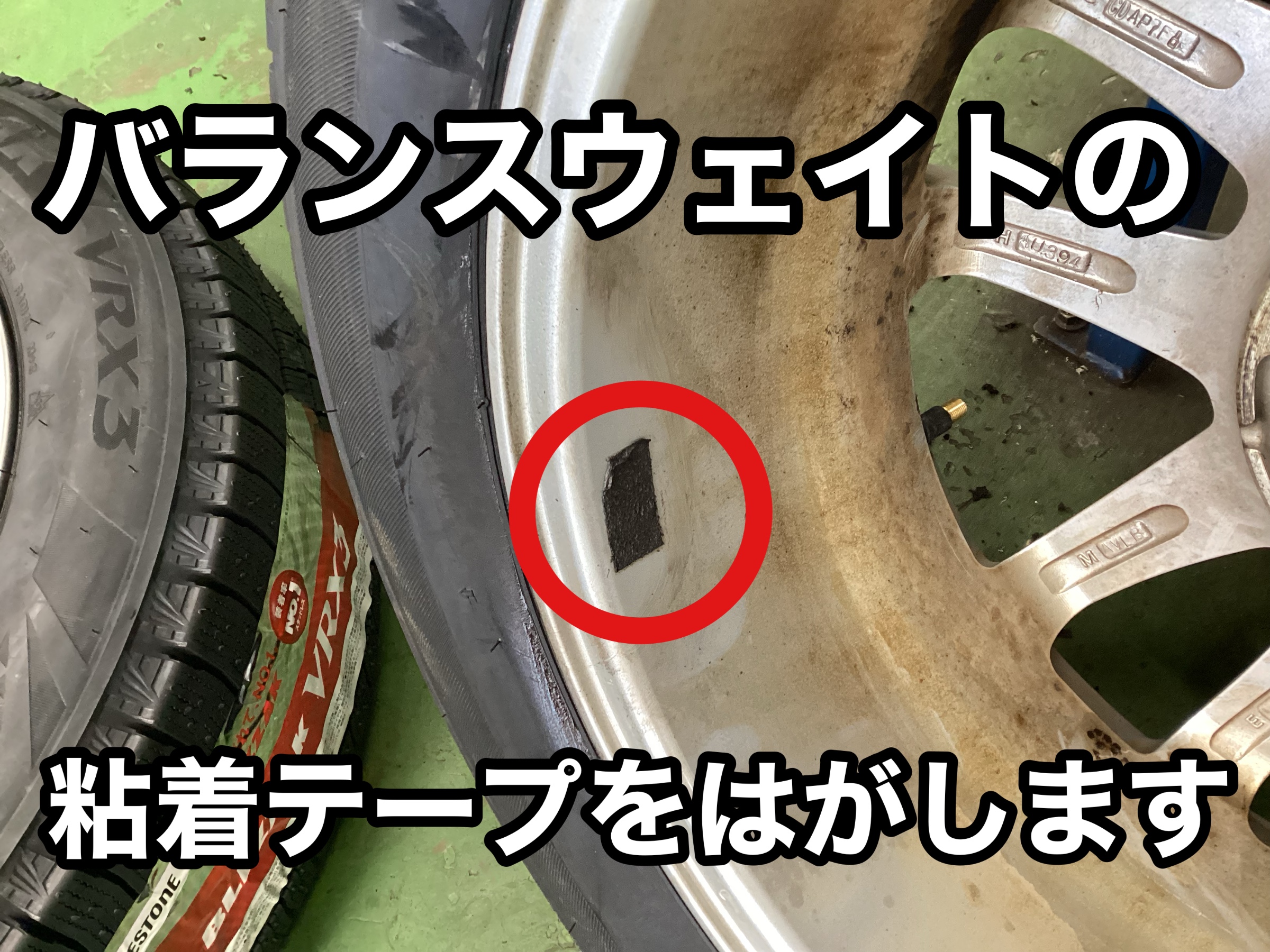 続いてバランスウェイトの粘着テープはがし!