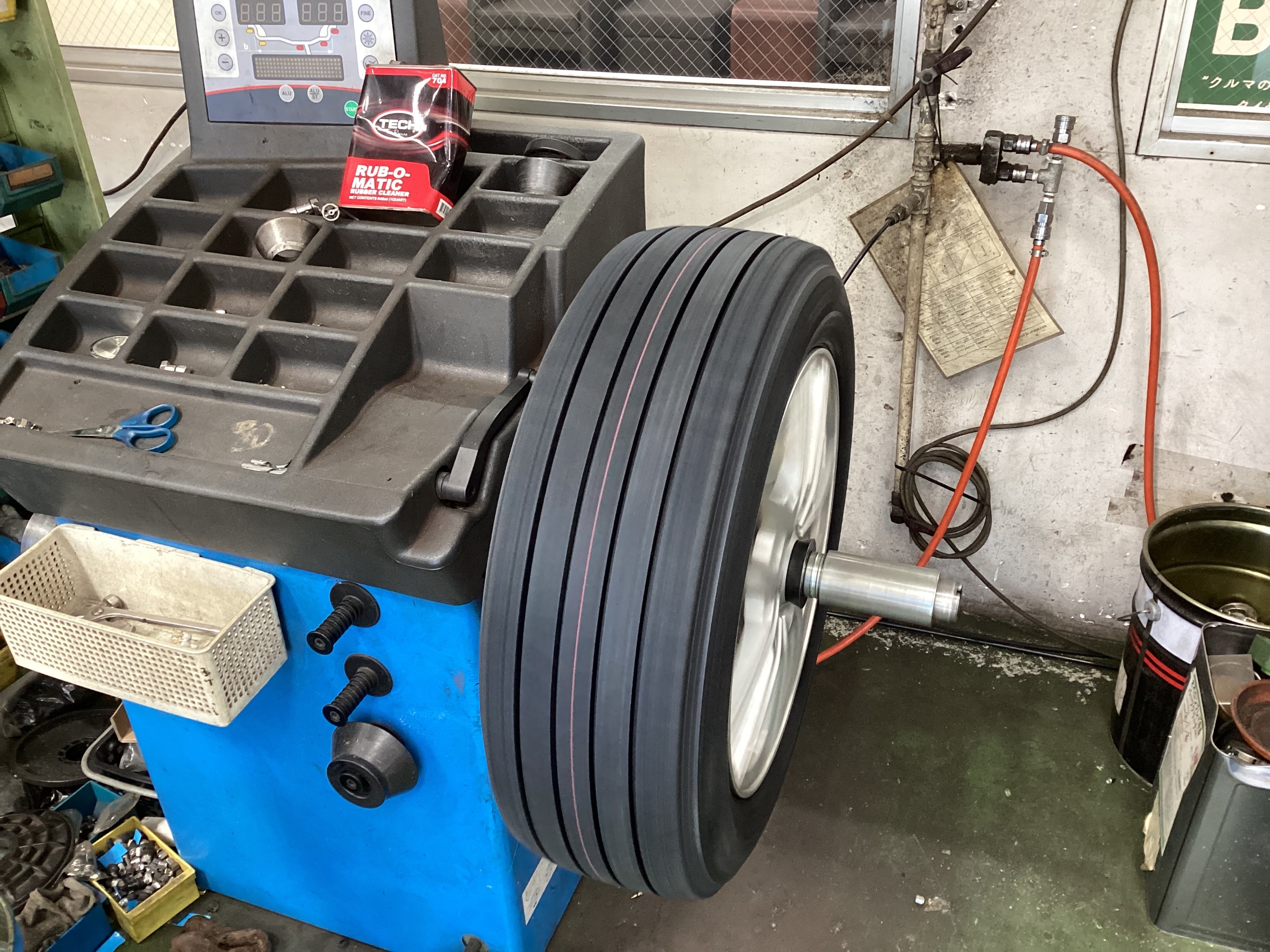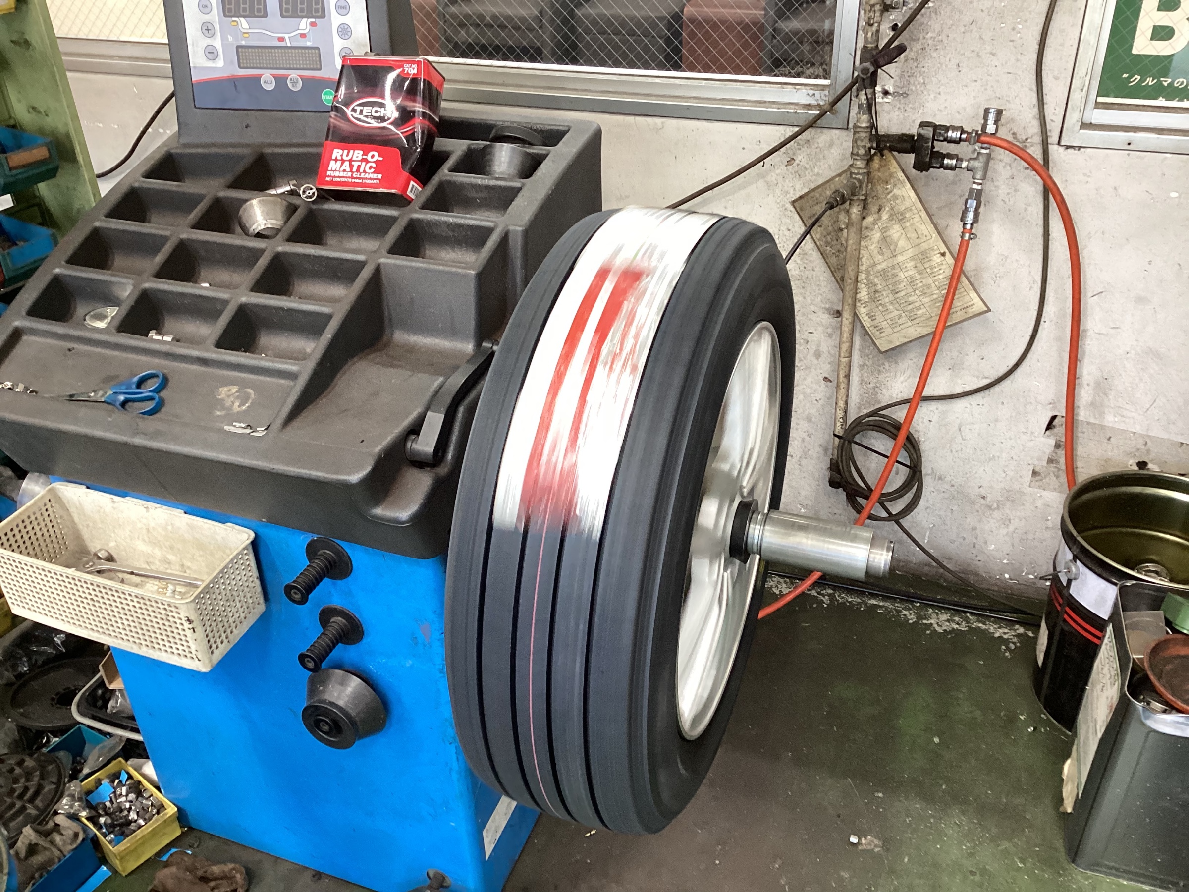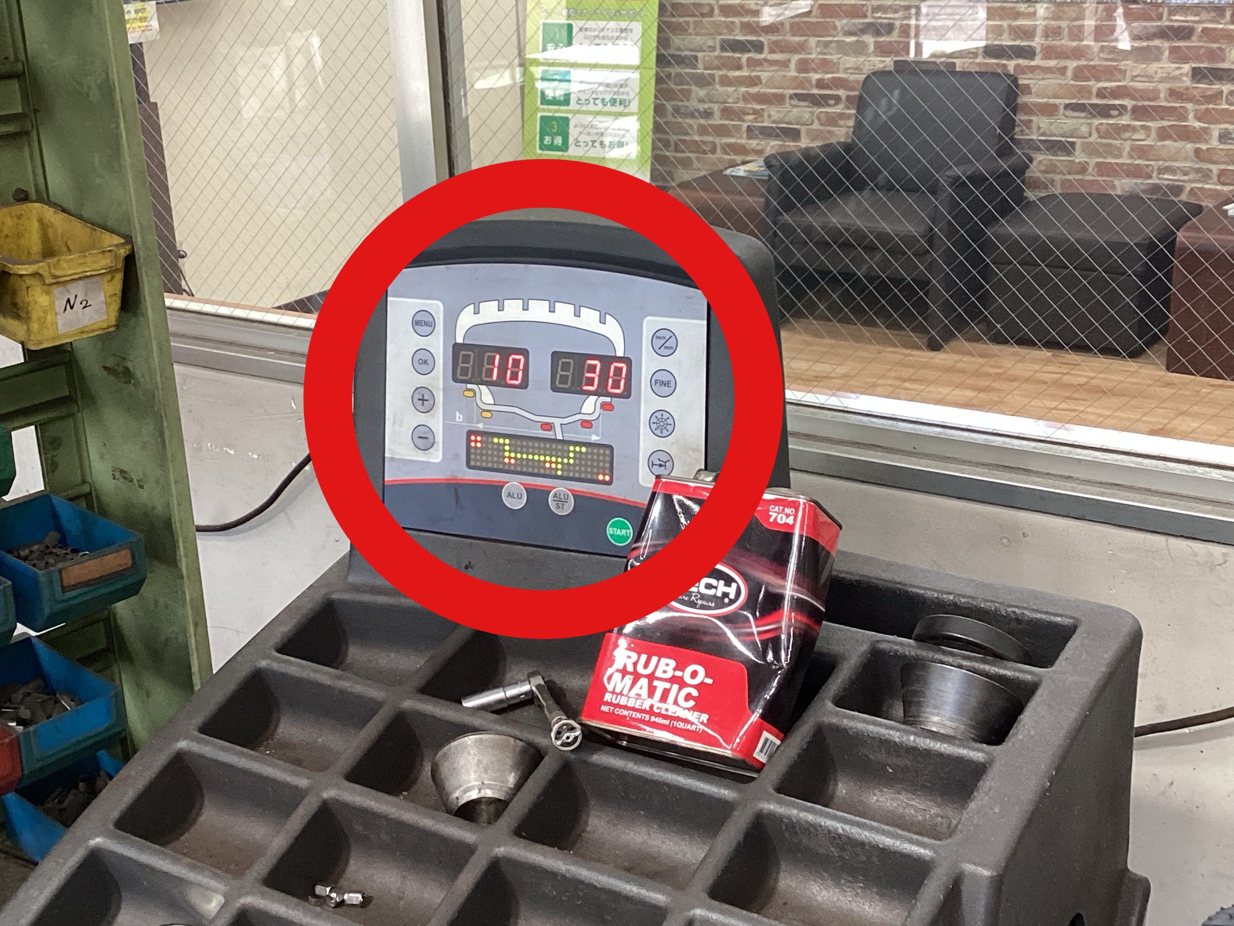 タイヤとホイールが回転しているときの重さの偏りをなくしていく作業になります。