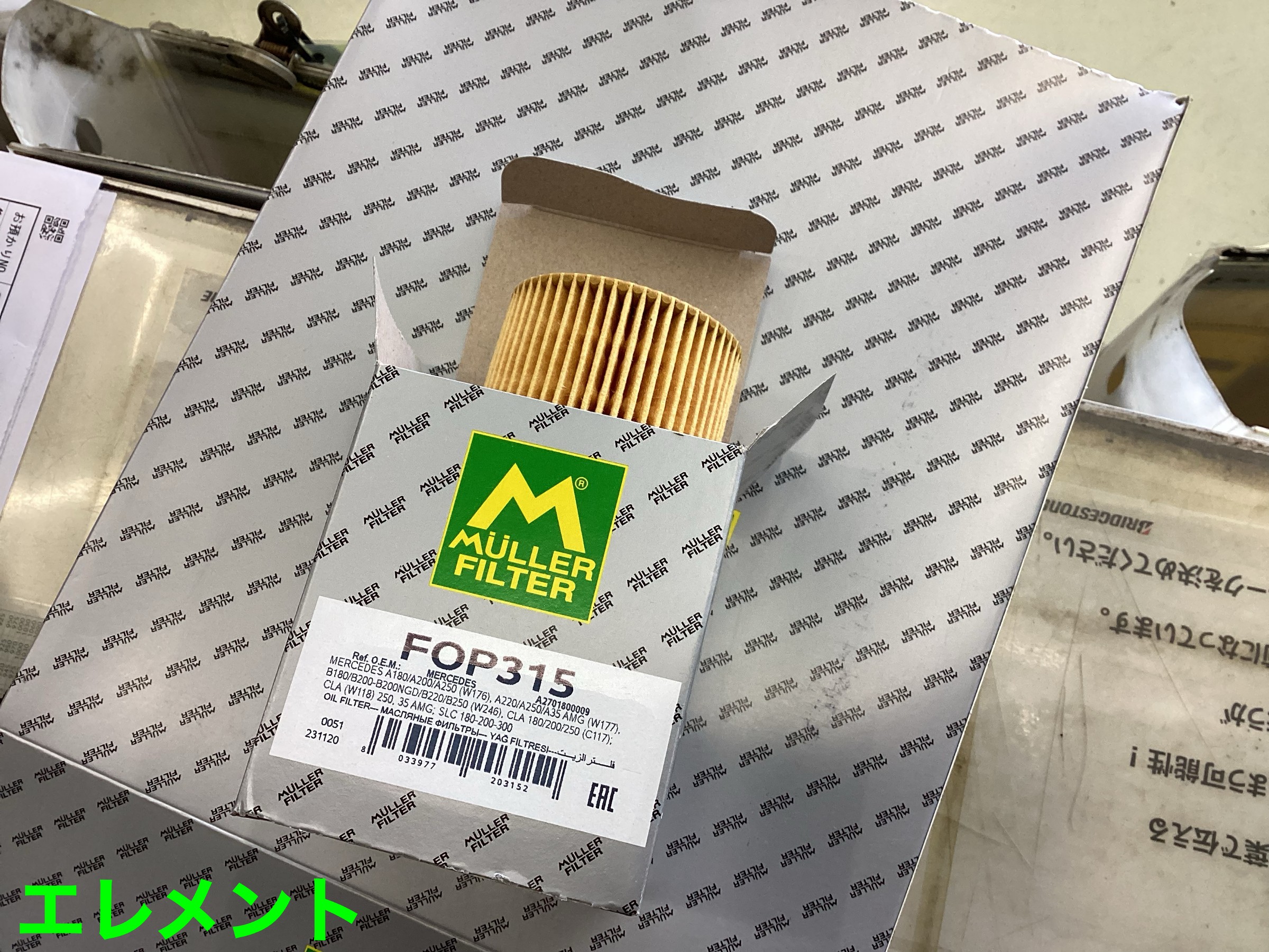 今回はメルセデスベンツB180にオイル・エレメント交換とエアコンフィルター交換をいたしました。