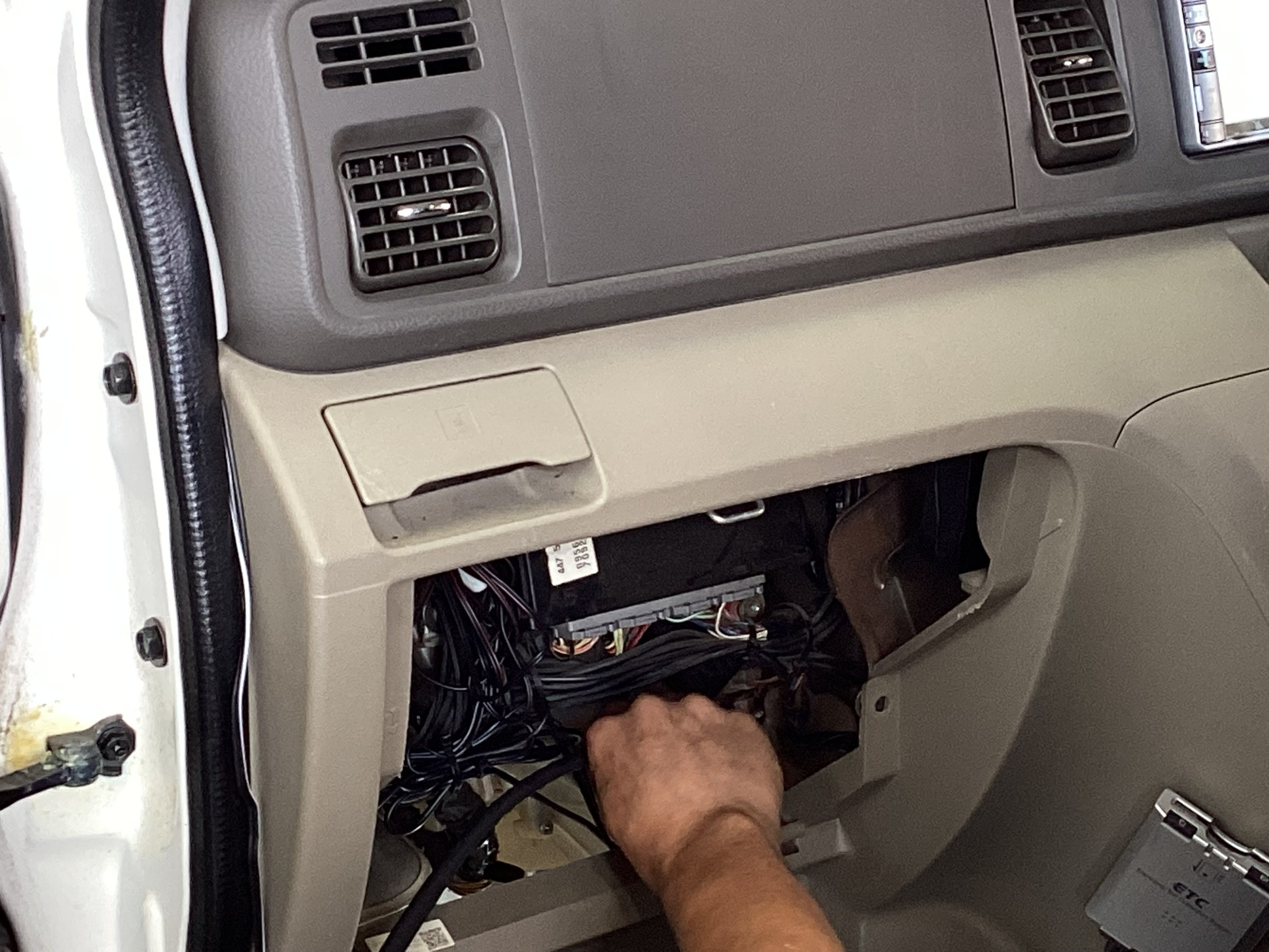 まずグローブボックスをはずしエバポレータ―を探します。
