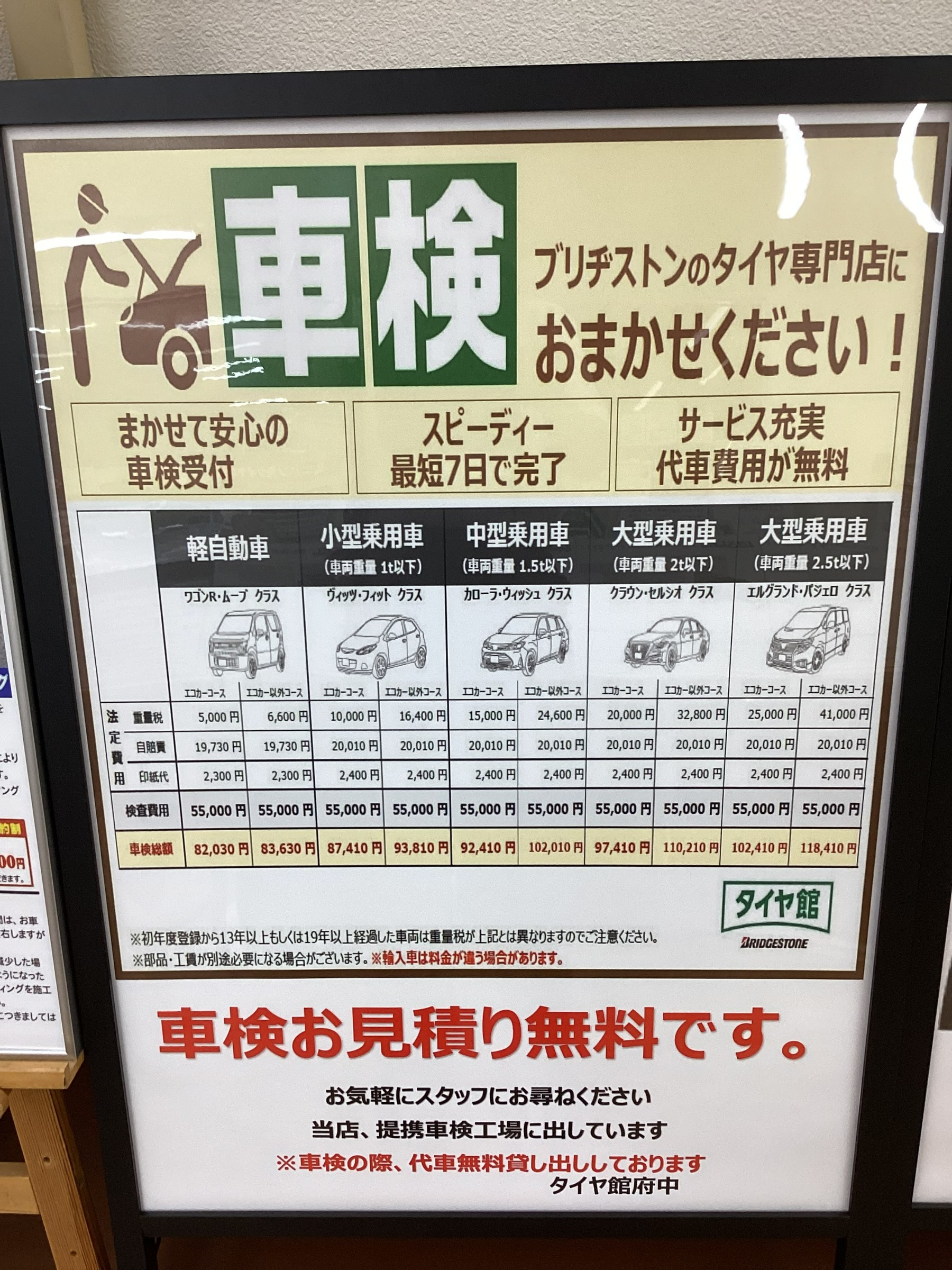 一度、タイヤ館府中に車検のご相談してください。
