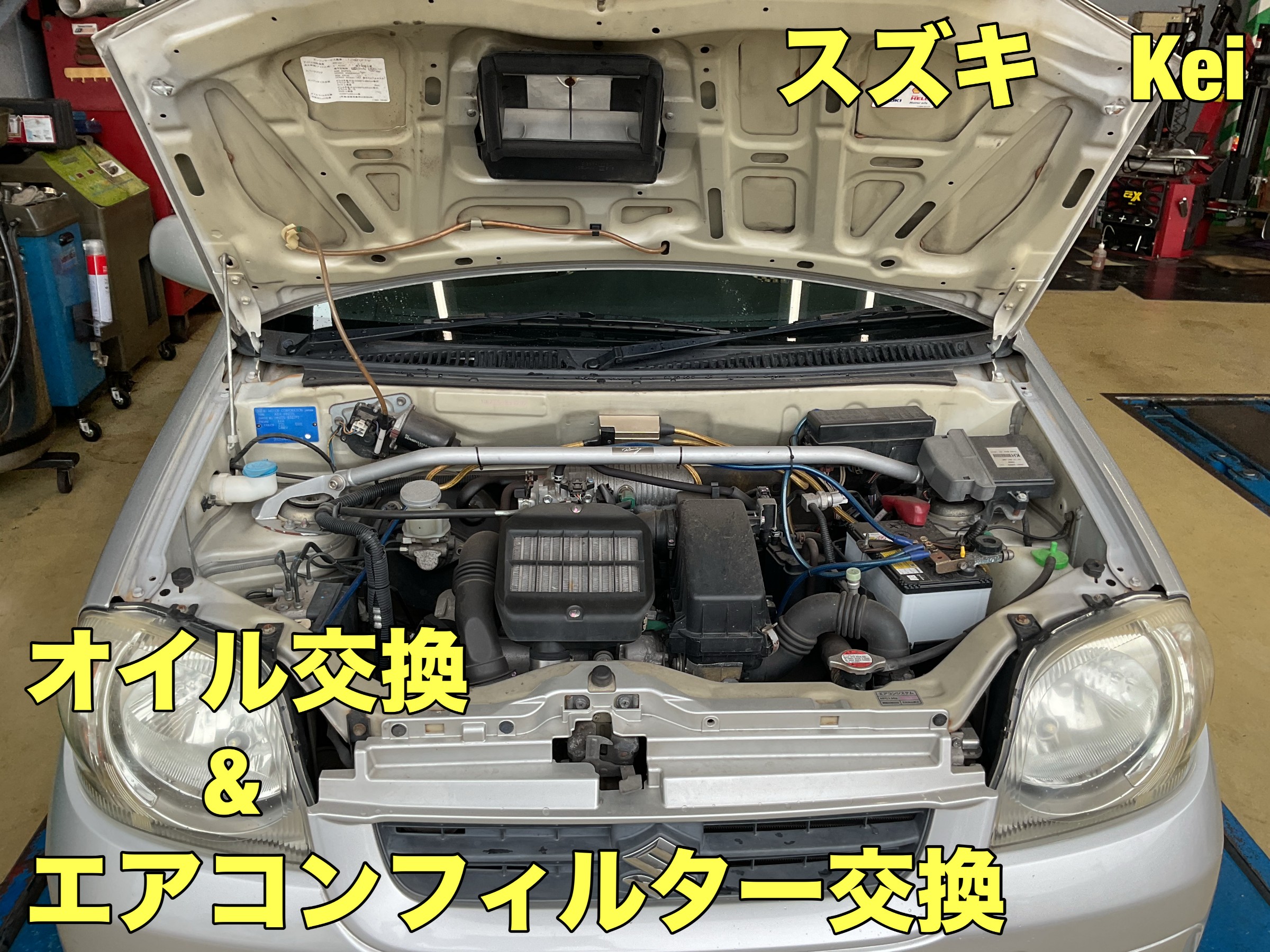 スズキ Kei オイル交換&エアコンフィルター交換!