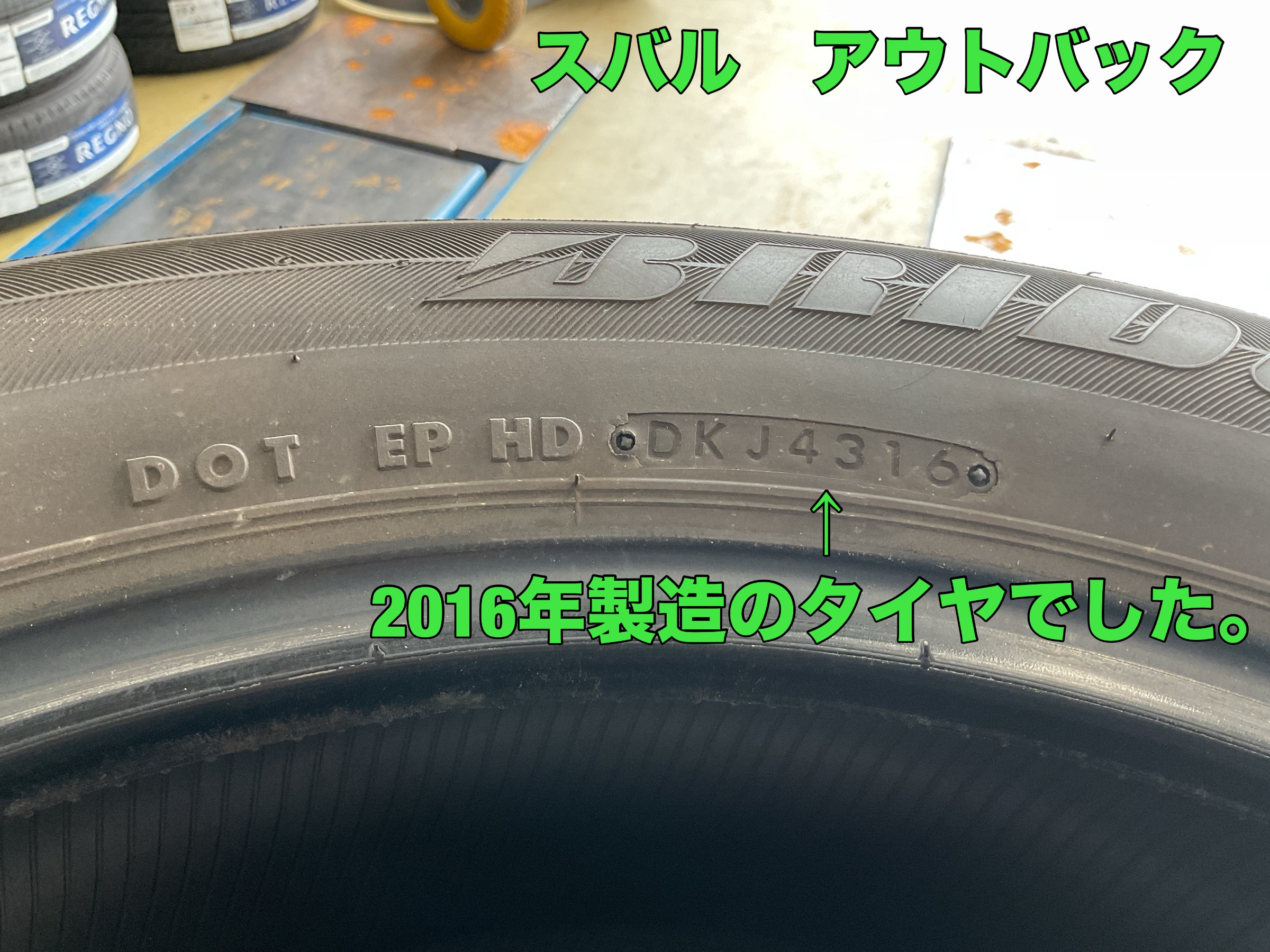 目立つひび割れはなかったのですが、2016年製造のタイヤでゴムが硬くなって