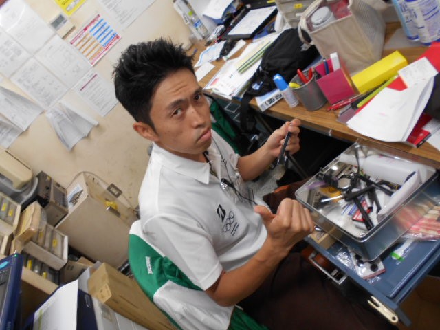 須崎さんはきれい好きなので、開店前に自分の机を整理していました!