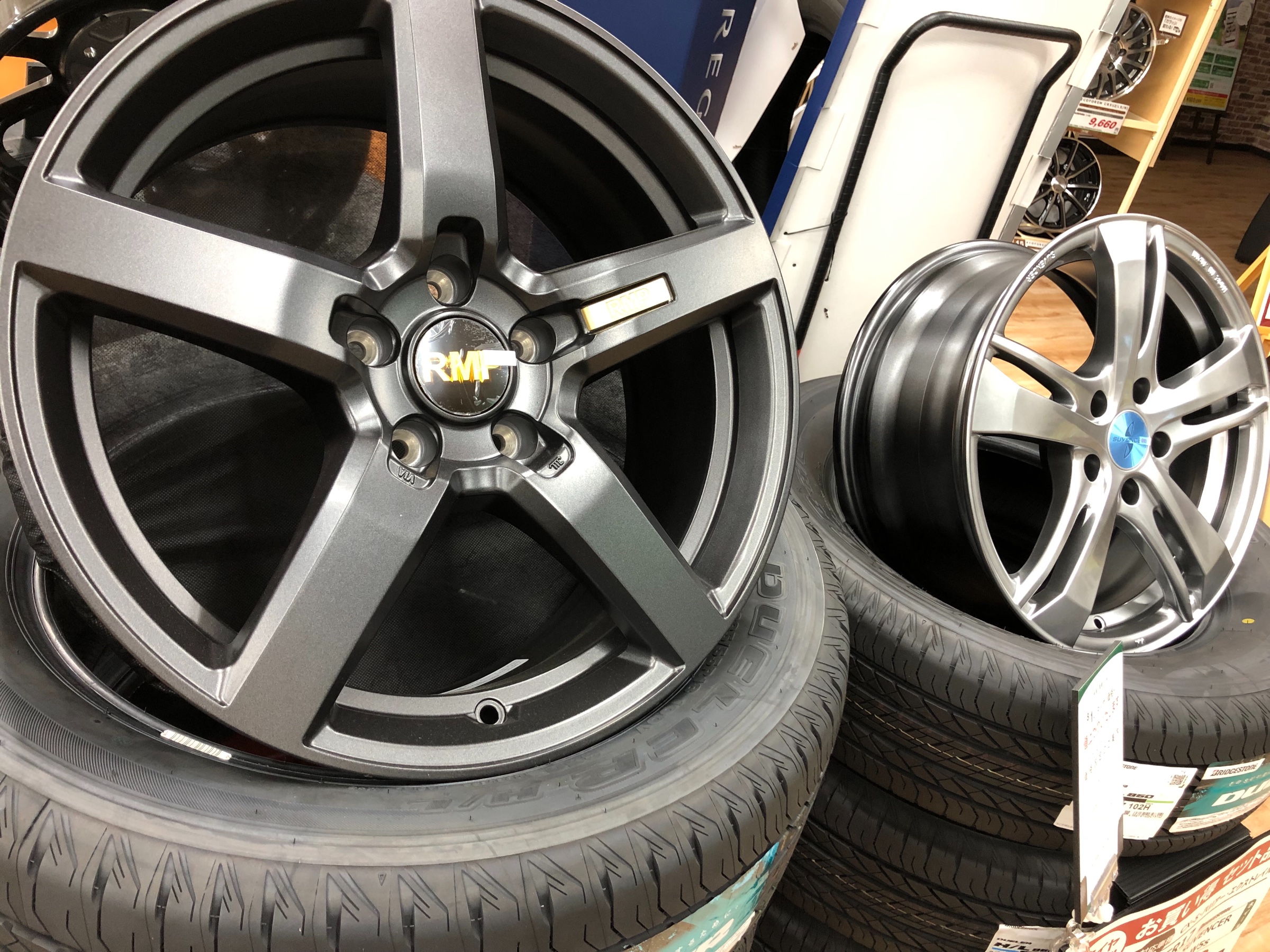 SUVタイヤとホイールのセットの展示しております( ´﹀` )
