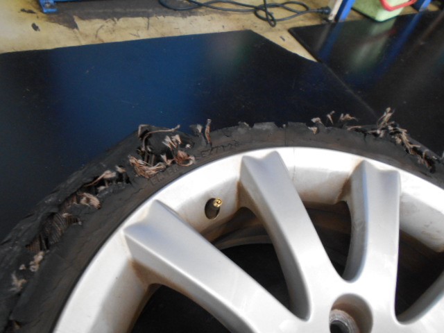 高速道路走行中にバーストしてしまったようです。