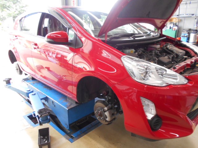 そんな中ご来店委頂きました真っ赤なアクアのタイヤ交換を行いました!