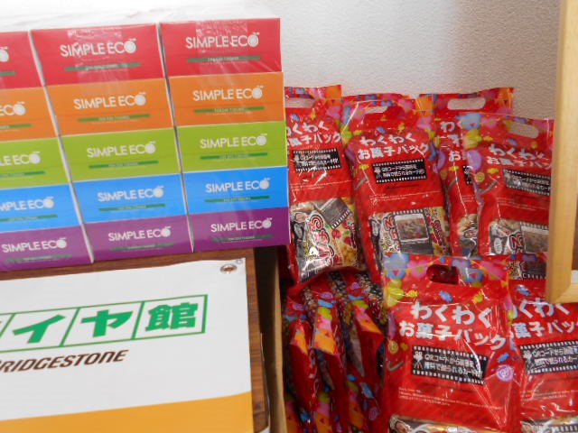 お子様連れの方にはこちらのお菓子とキャラクターがついてる風船をプレゼント!