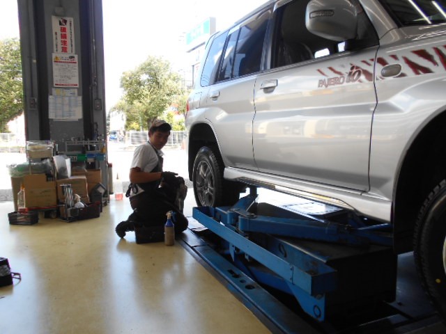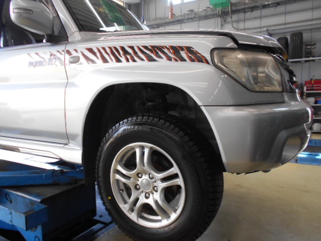 今日はパジェロイオのお客様のスタッドレスのタイヤ交換を行いました!