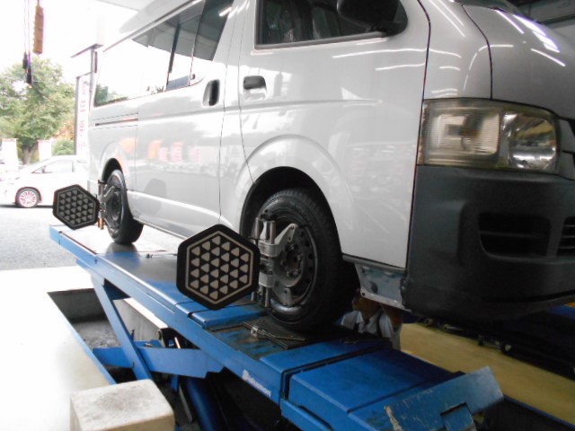こんにちは斎藤です。本日はハイエースのアライメント作業を行いました!
