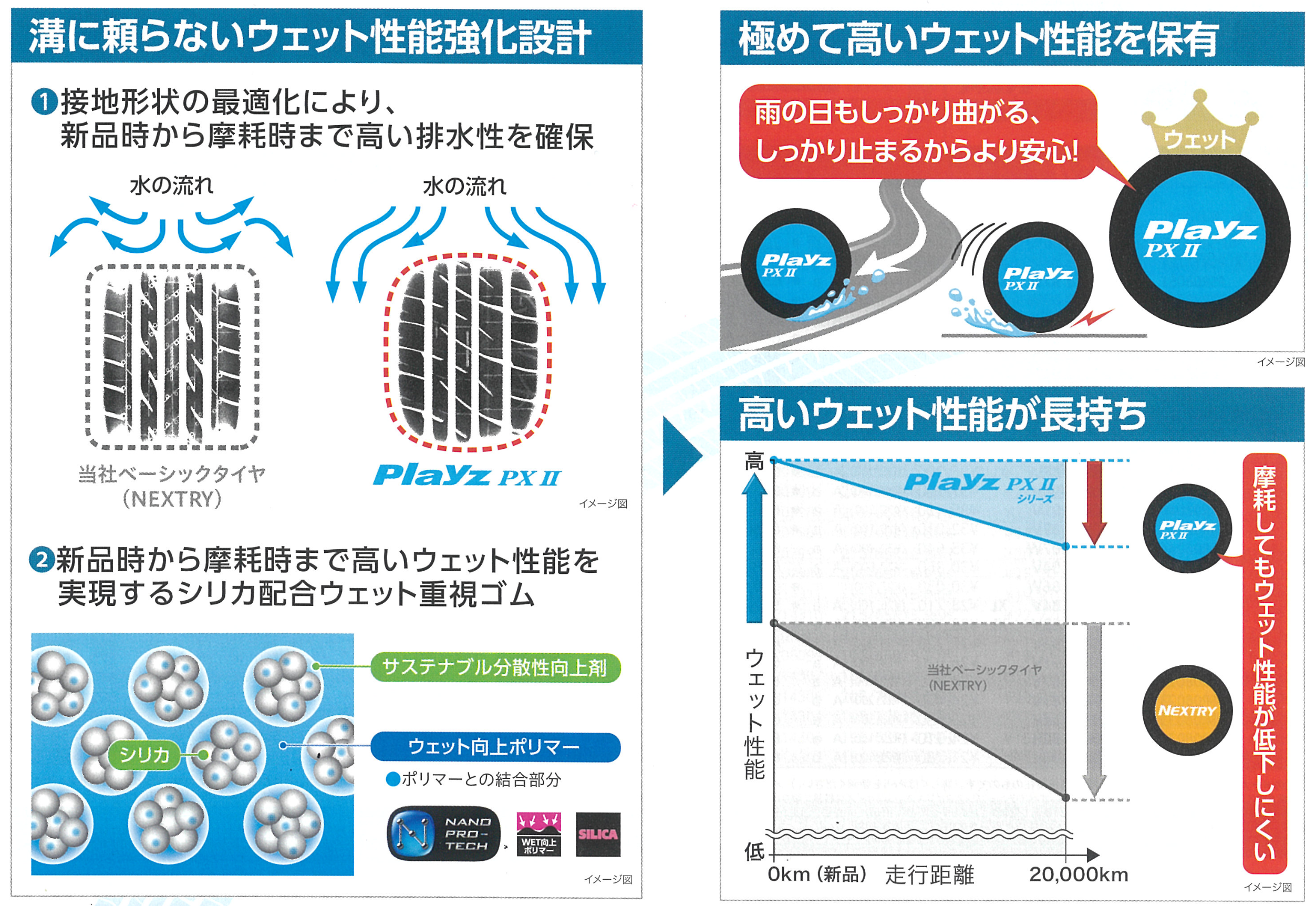 ウェット・低温からドライ・高温まで広範囲でのグリップ向上と