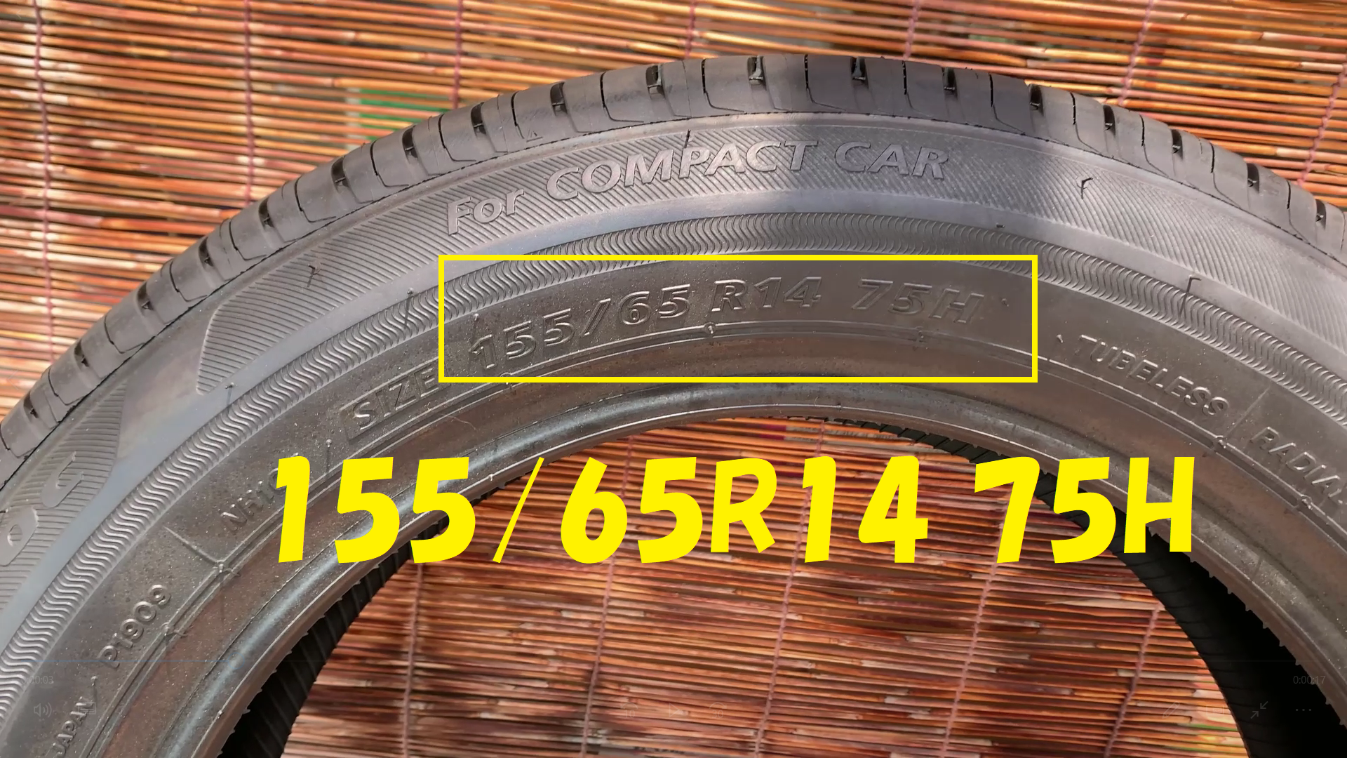 こちらのタイヤは 155/65R14 75H と記載があります。