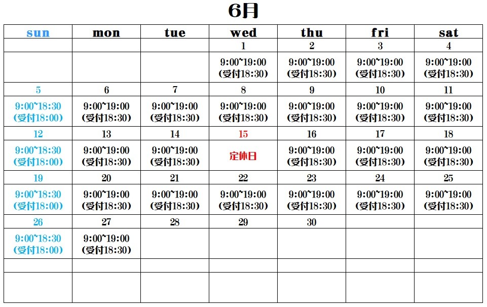 平日 土曜日9:00~19:00 日曜日 祝日9:00~18:30