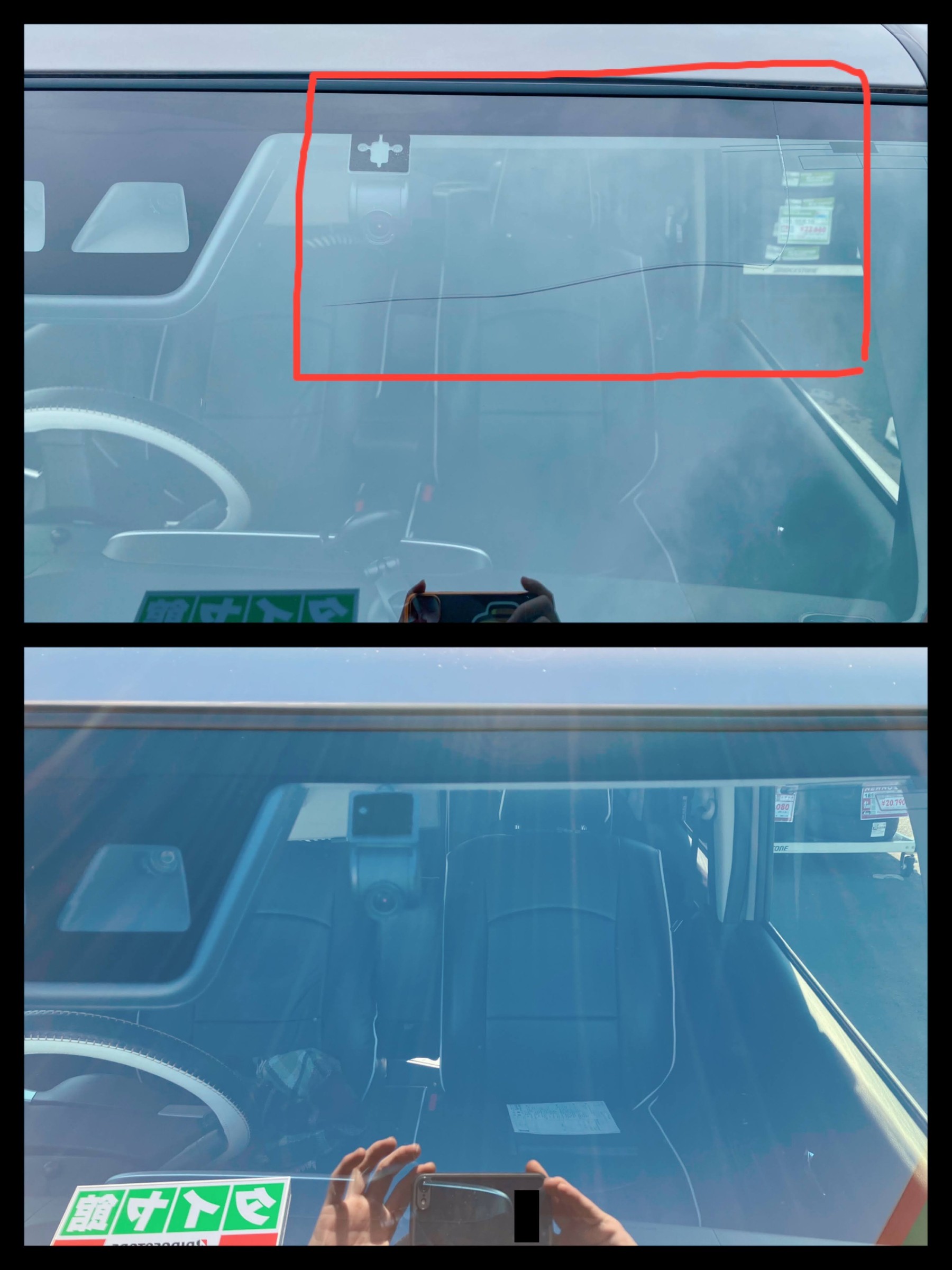画像上の赤い四角のところがヒビがあった部分で下は綺麗に交換が終わった写真です♪