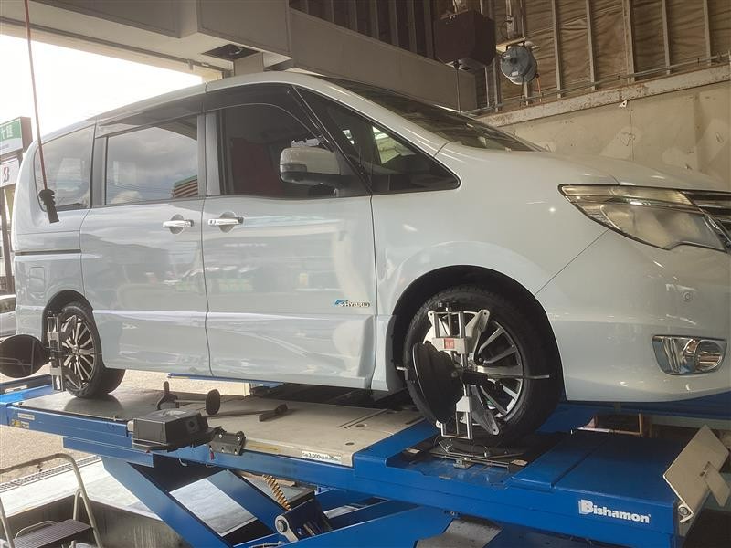 ニッサンセレナタイヤ交換アライメント調整させていただきました(^^)/