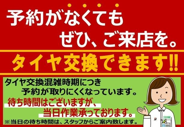 予約をしていなくても、タイヤ交換できます!