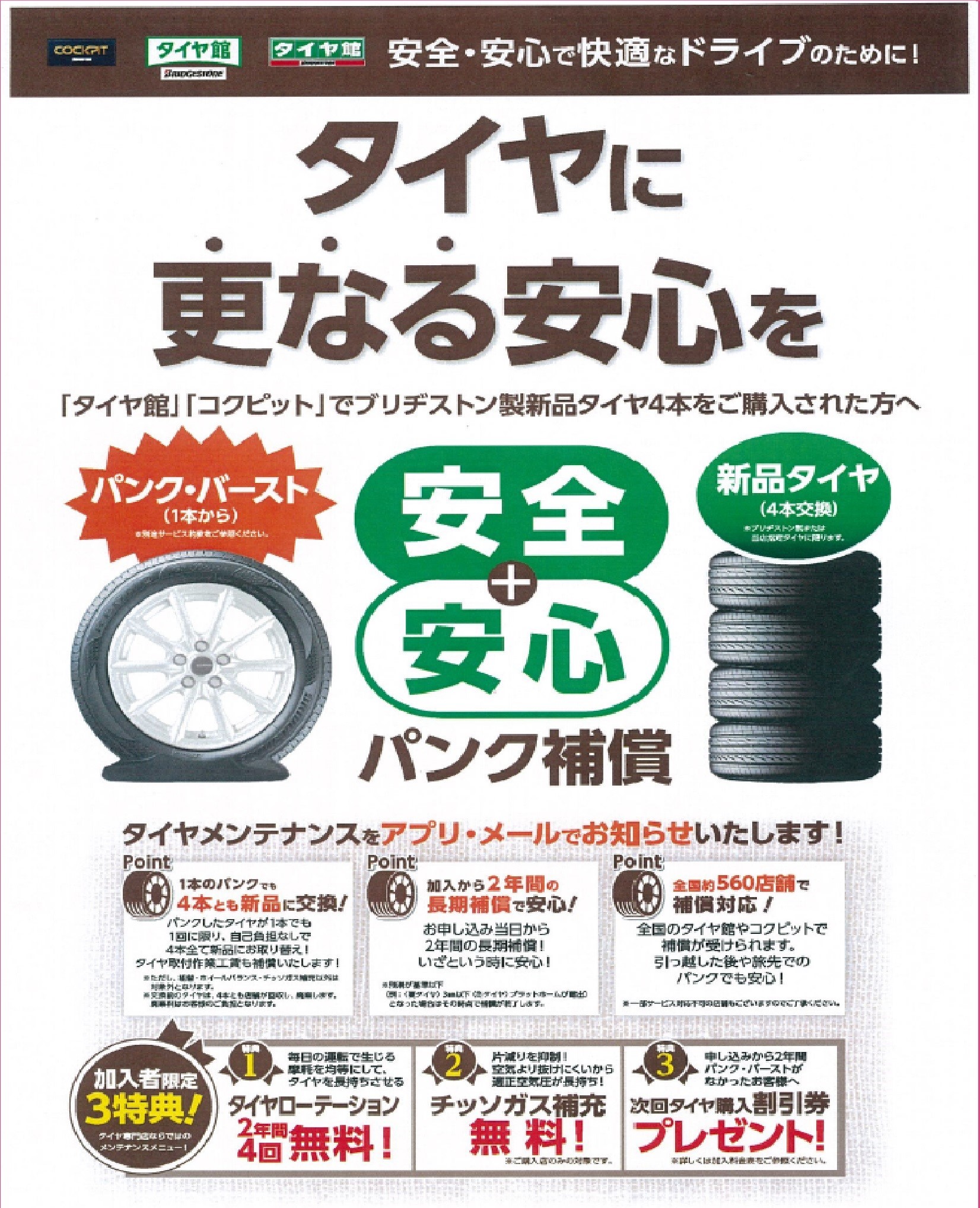 タイヤ交換~次回の交換までの万が一のパンクでの出費をカバーして、