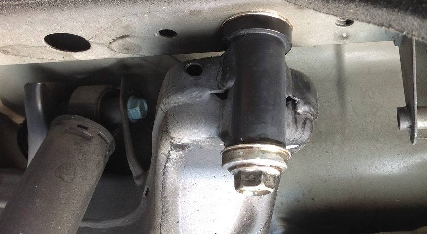 断面図はこんな感じで、ボルトとメンバー取付けの“遊び”を無くし、フレームに対しての取付け精度(位置)と取付け剛性をUP!!させます。