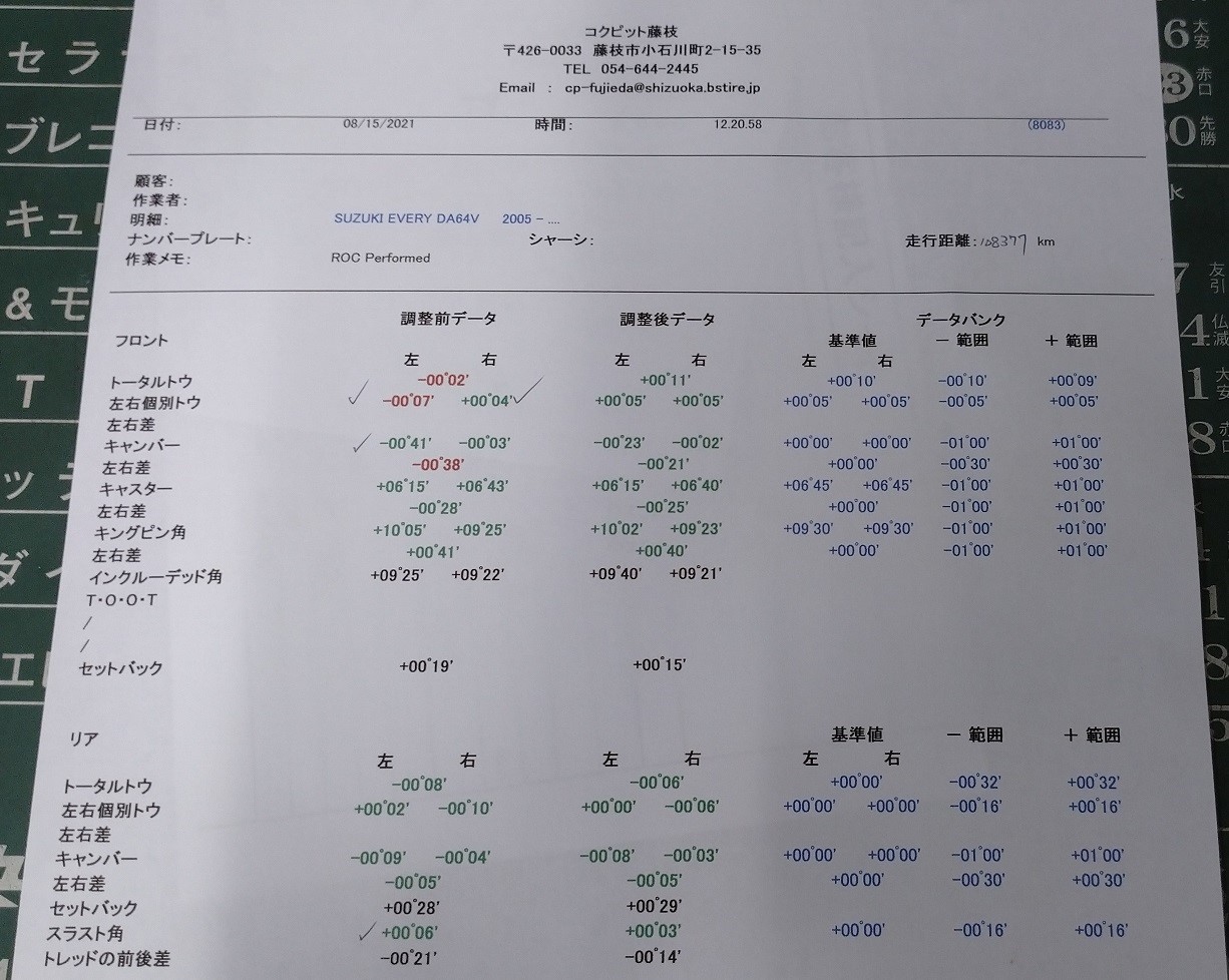 ハンドルセンターもピッチリ真ん中、直進時のフラつきも減って運転が快適になったと思います♪