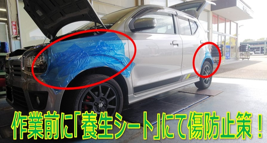 作業を始める際、傷防止の為に 「 養生シート 」の貼り付けを行なってからとりかかります。