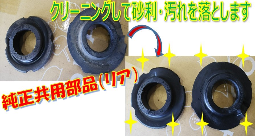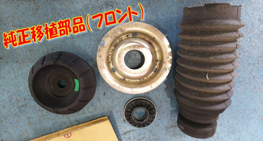 交換する足廻りによっては純正部品を一部流用する様になっていますが、今回はお客様が純正部品(新品)のアッパーマウントをご用意していただいたので、そちらを使って組み上げていきます。