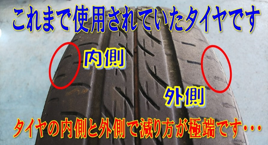 そして、タイヤの極端な減り方になってしまった原因 ” タイヤの接地角度のズレ ” を直す アライメント調整 も同時に行なっていただきました。