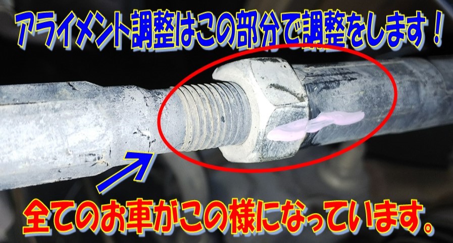 ここで タイヤの接地角度 を調整して、正常な角度に合わせていく作業を アライメント調整 と言います。