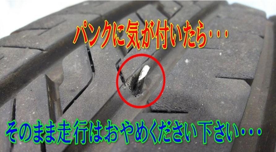 異物が刺さっている箇所によってはパンク修理も不可能なケースがございますが、異物が刺さったまま走行される事によって、直せたタイヤが直せなくなります。