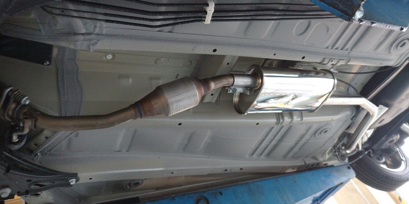 最近のスズキ車はセンターパイプ&リアピースが一体になっているので、センターパイプ前方でカットして接続する方式になっています。